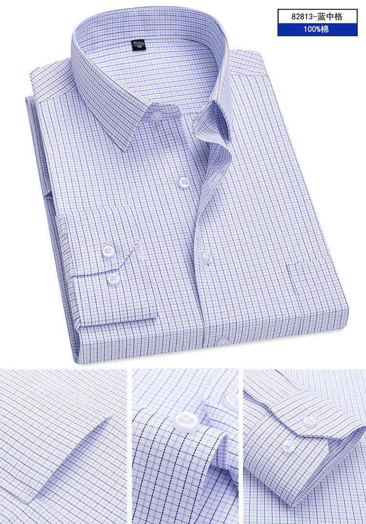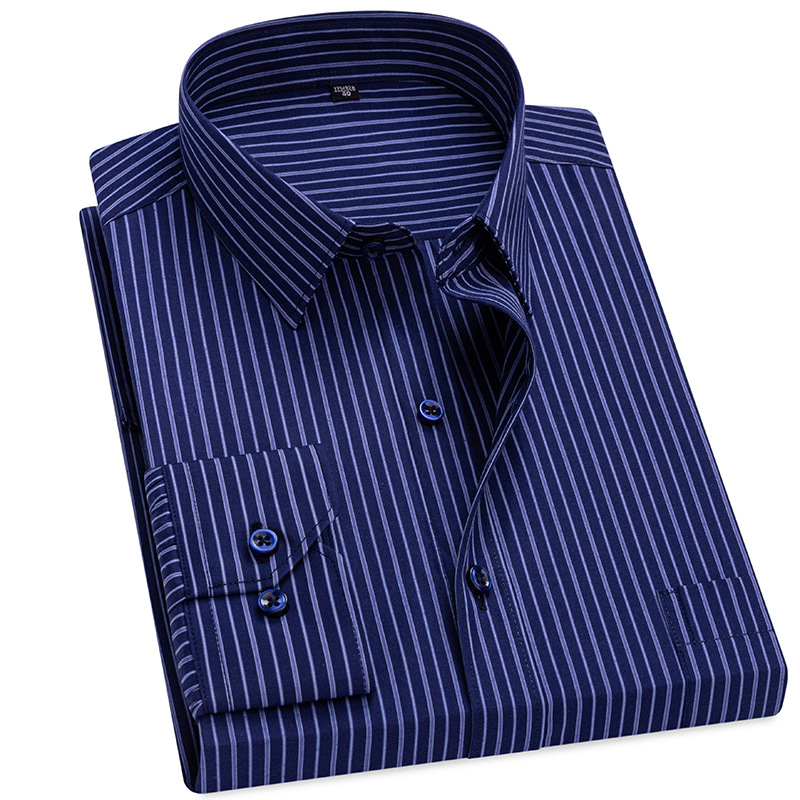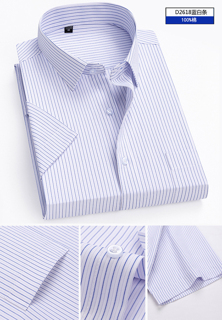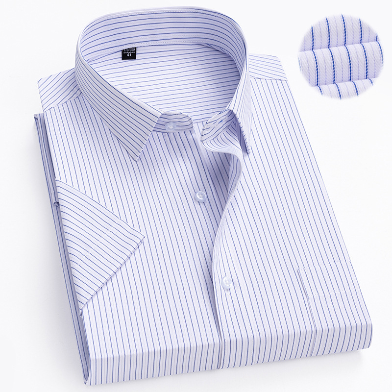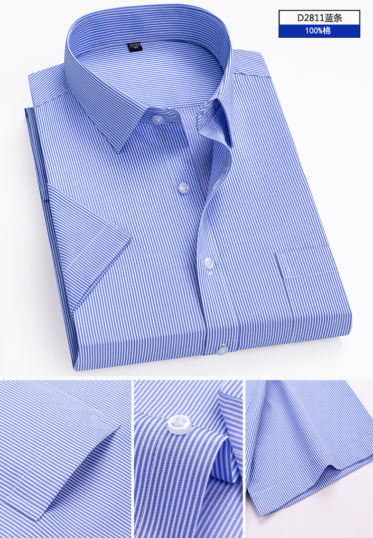 2025년 신형 고급 순면 무다림 셔츠 남성용 긴팔 스트라이프 구김 방지 흰색 셔츠 직장 및 비즈니스용스토어 가기