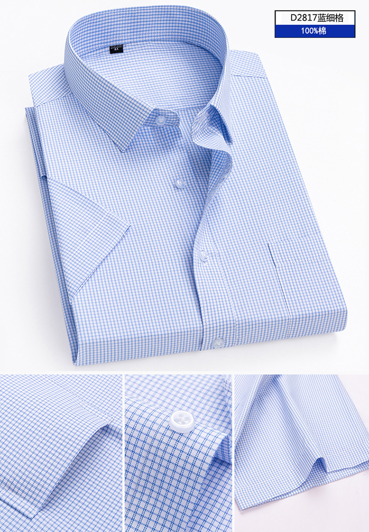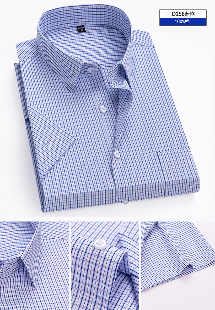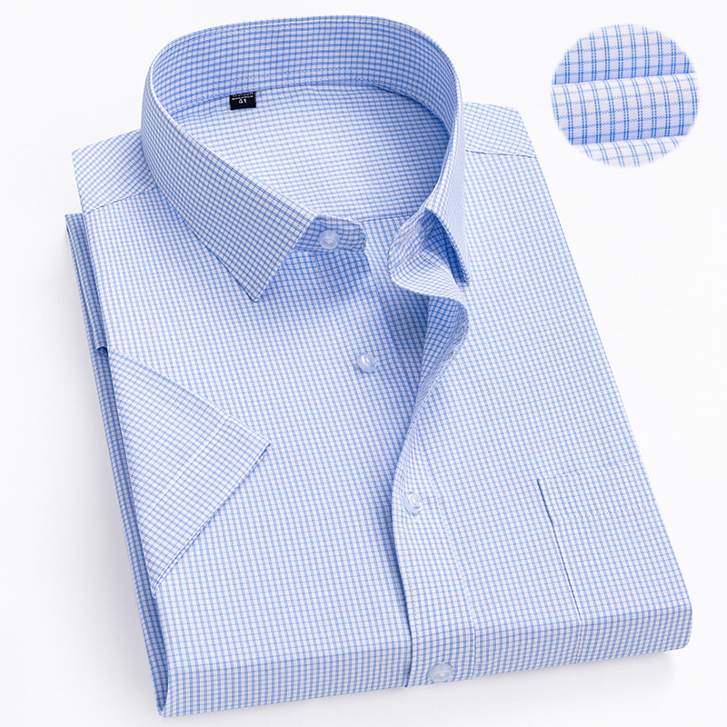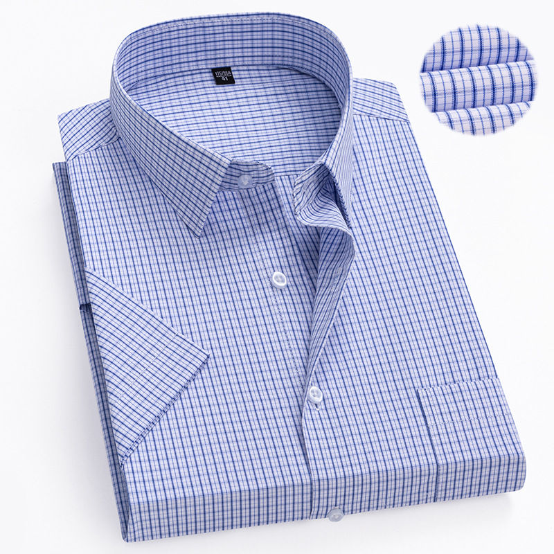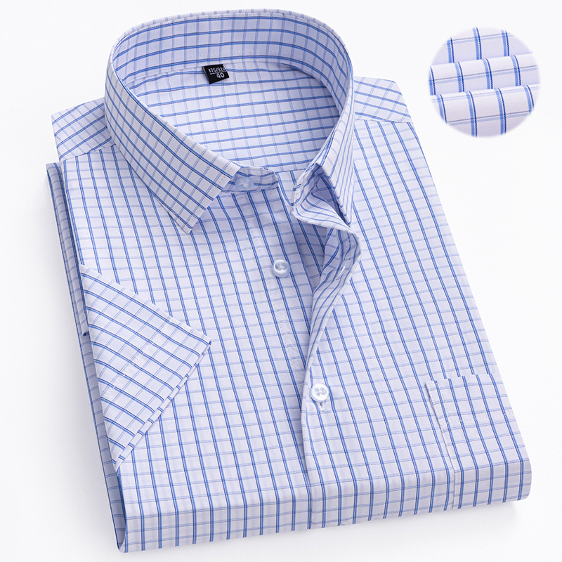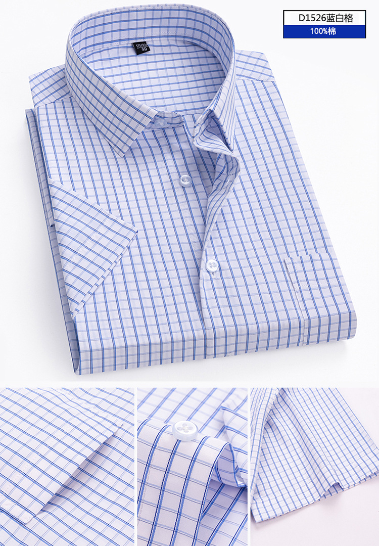 • 반팔 D1526 파란색과 흰색 체크 무늬