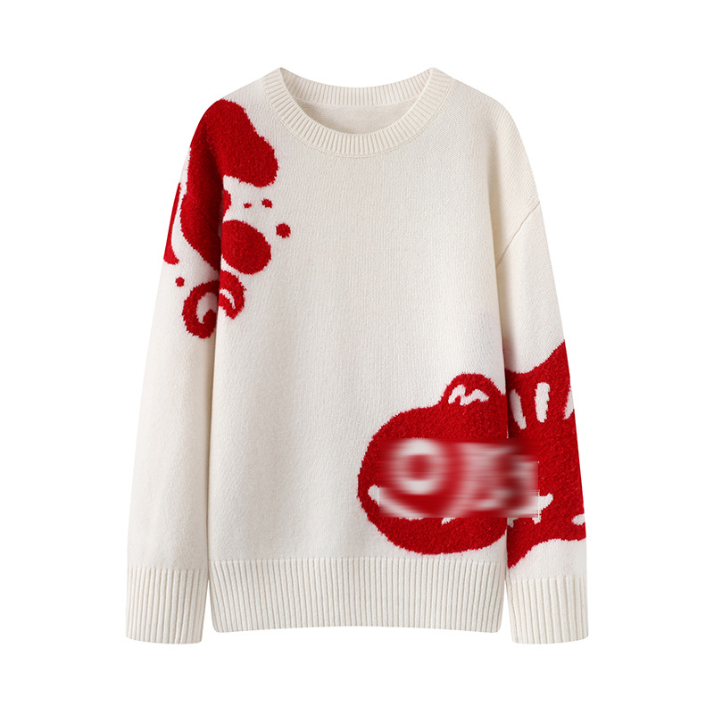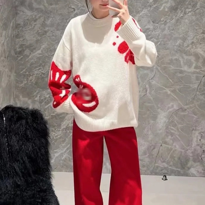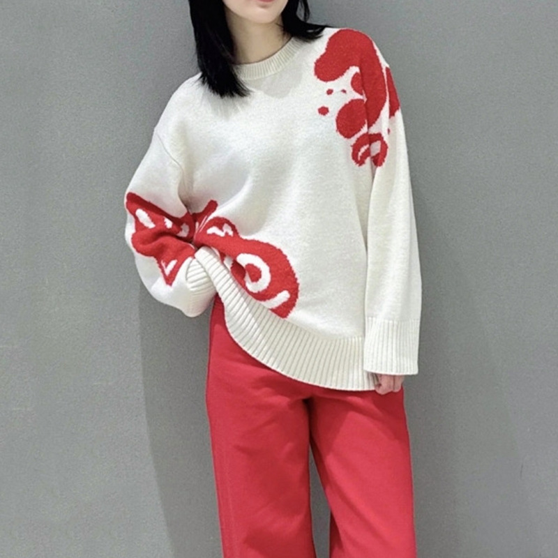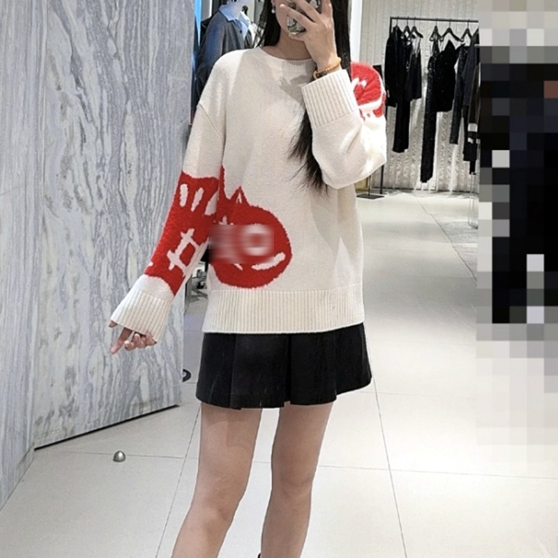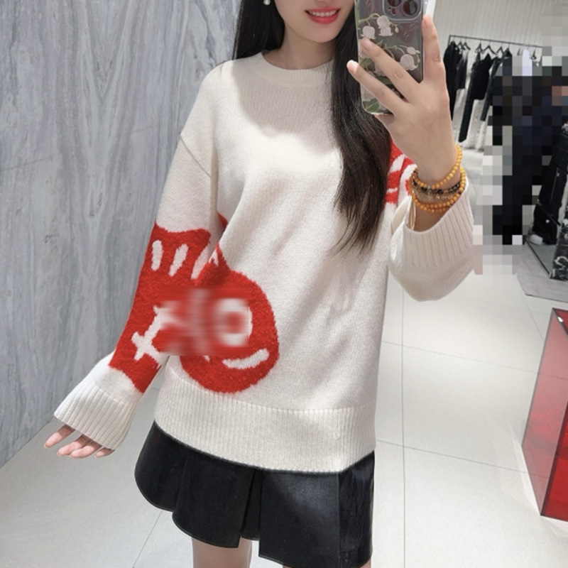 2025 Spring New Crewneck Vintage Koi Jacquard 느슨한 슬리밍 올 매치 니트 스웨터 여자 MBE1SWT058