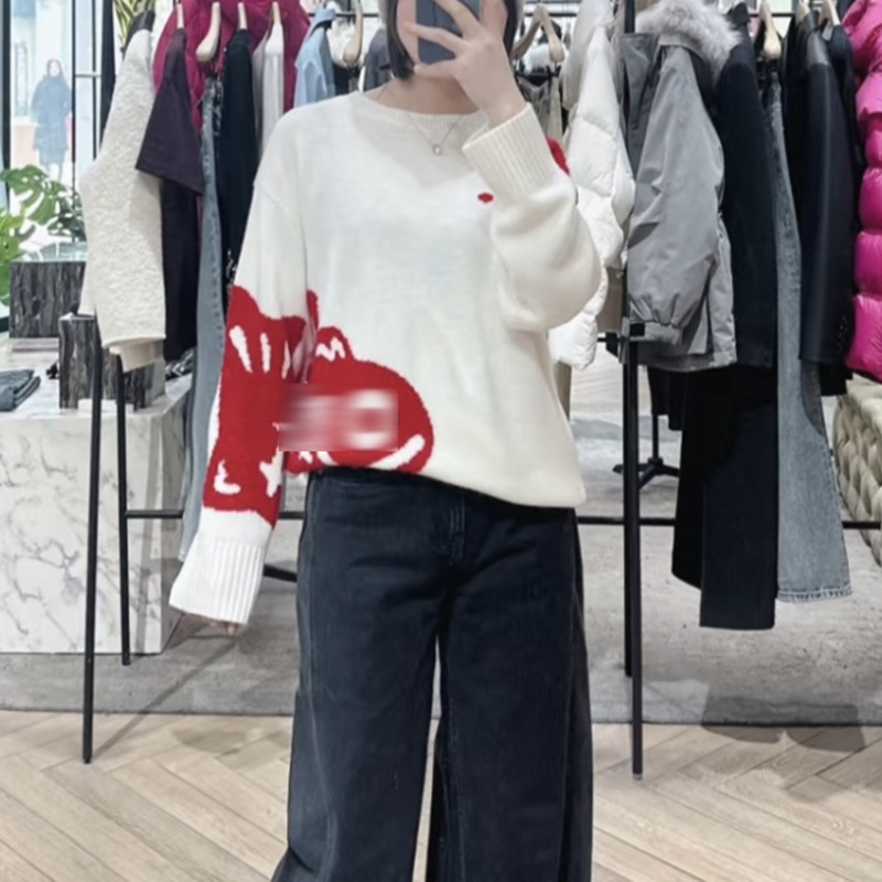 2025 Spring New Crewneck Vintage Koi Jacquard 느슨한 슬리밍 올 매치 니트 스웨터 여자 MBE1SWT058스토어 가기