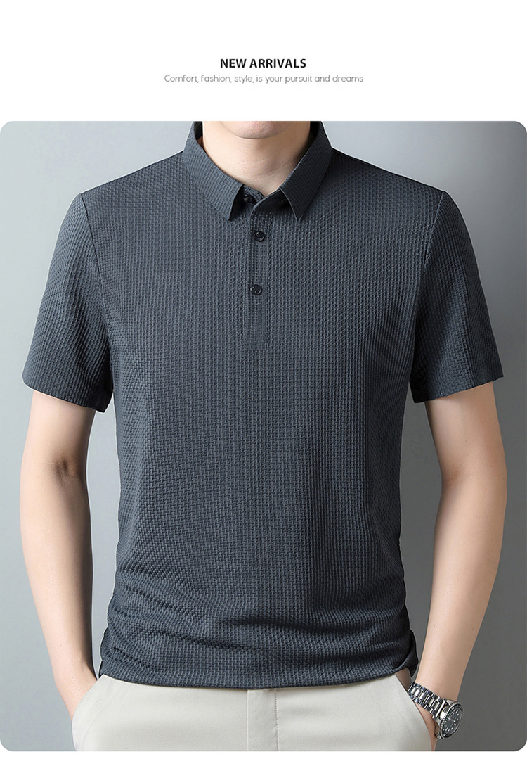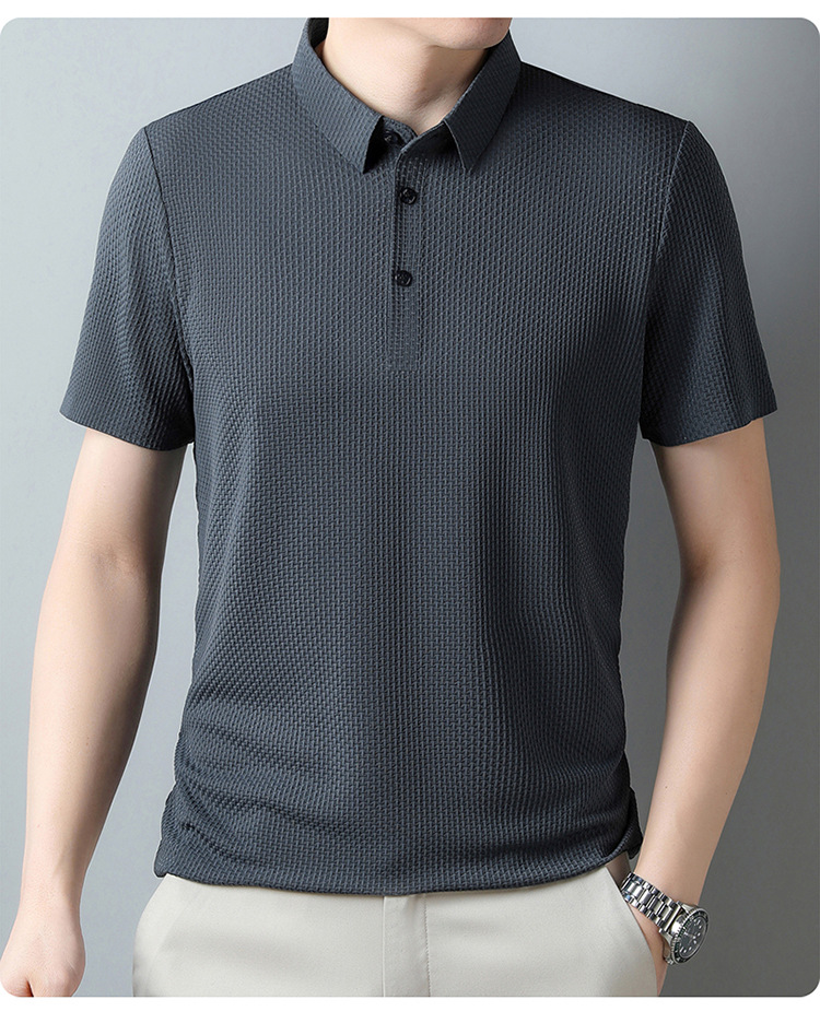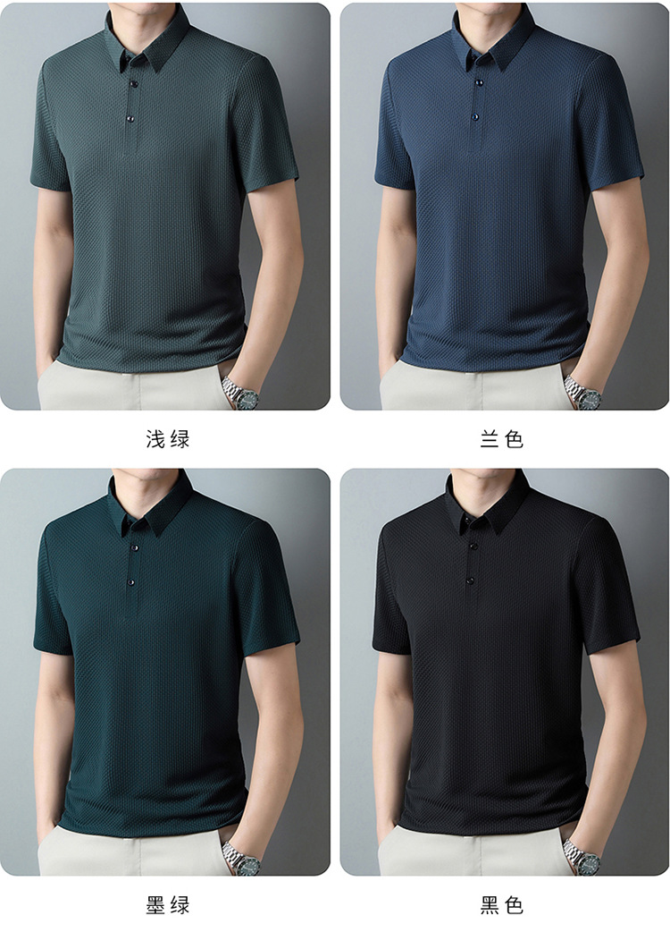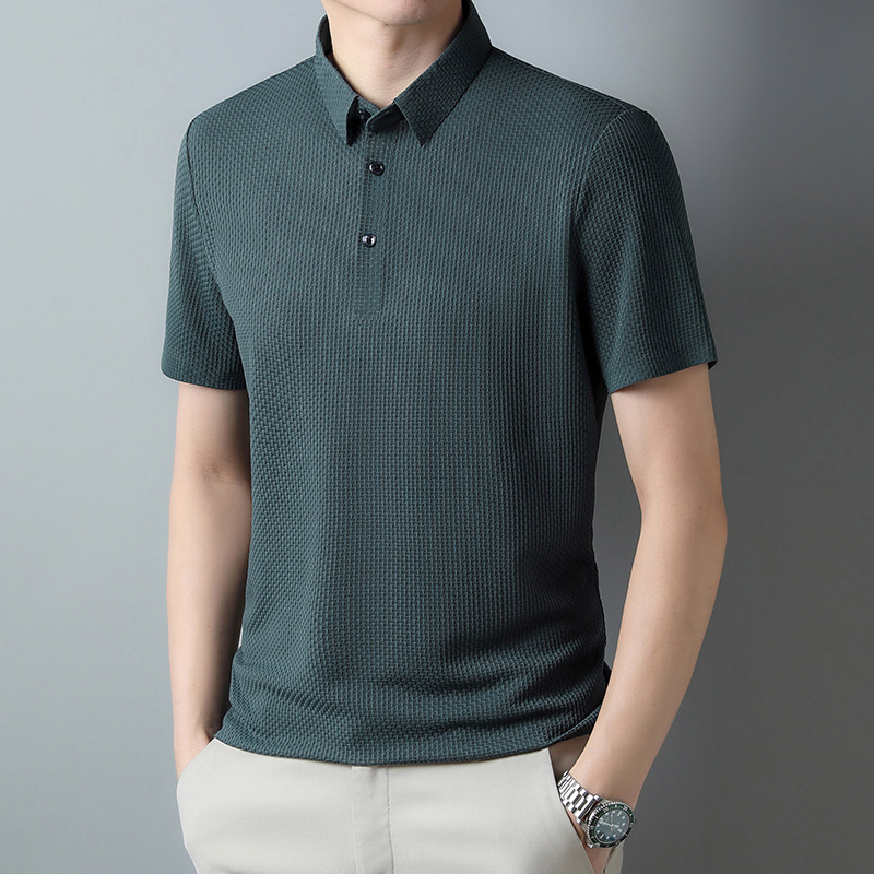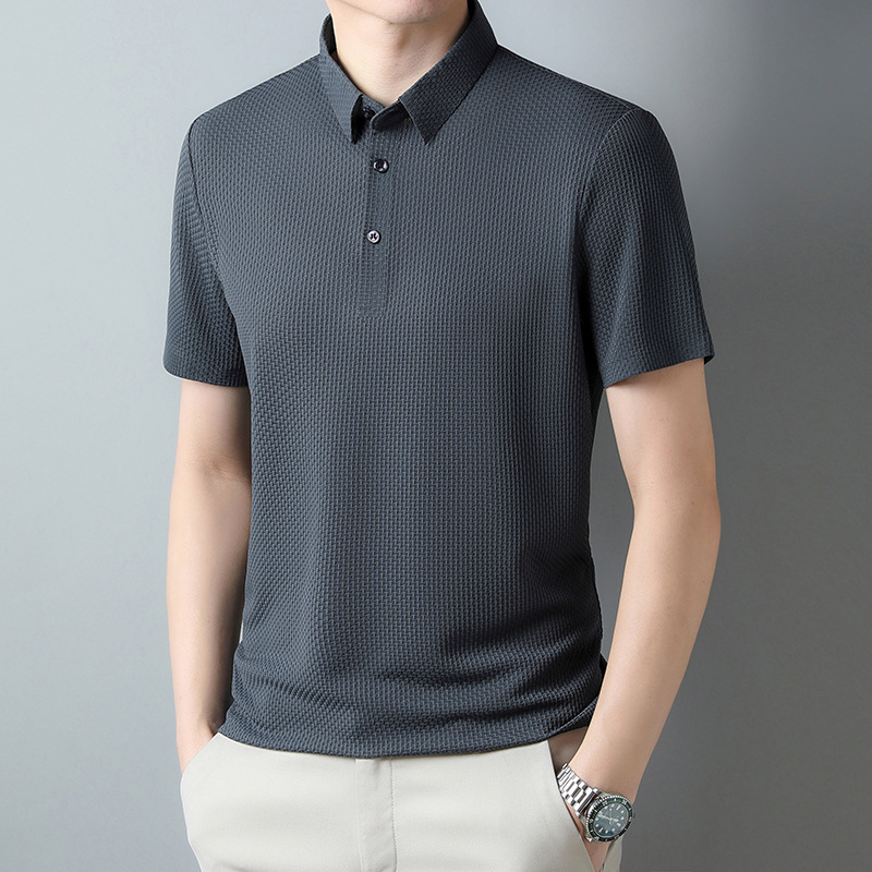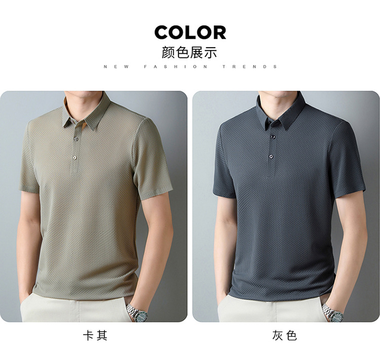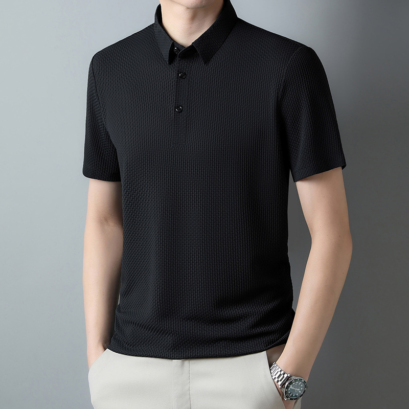 국경 새 여름 아이스 실크 남성용 폴로 셔츠 캐주얼 남성용 자카드 엘 다림질 반팔 티셔츠