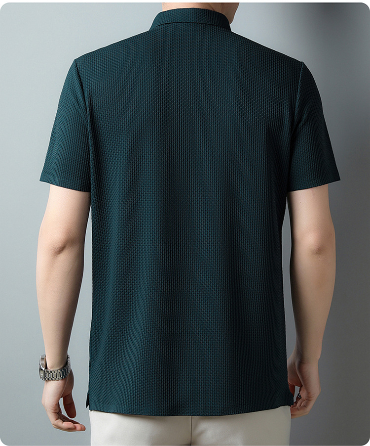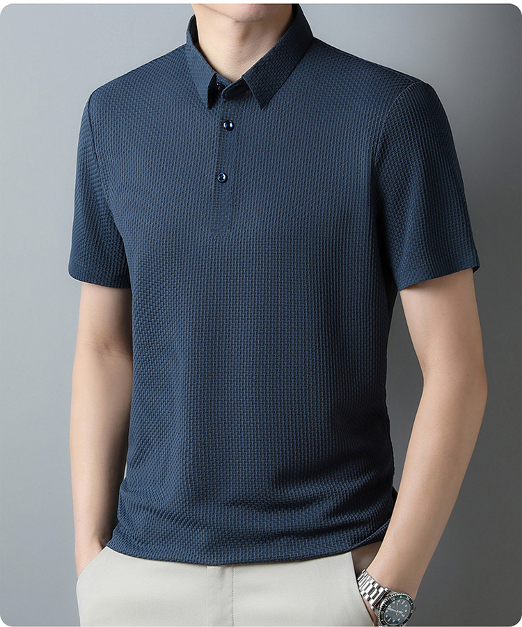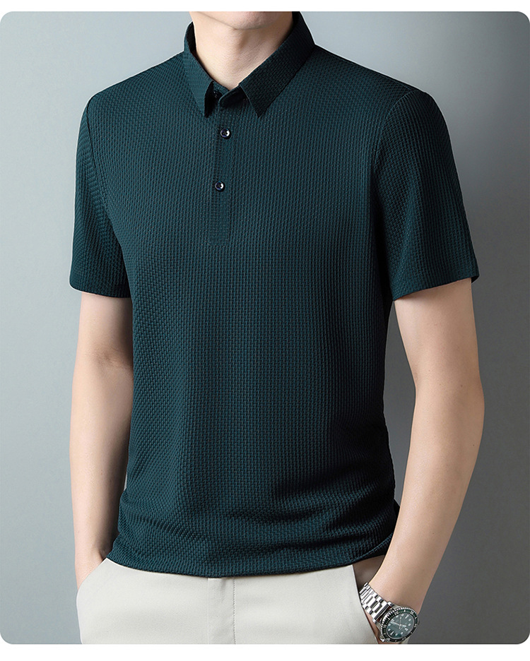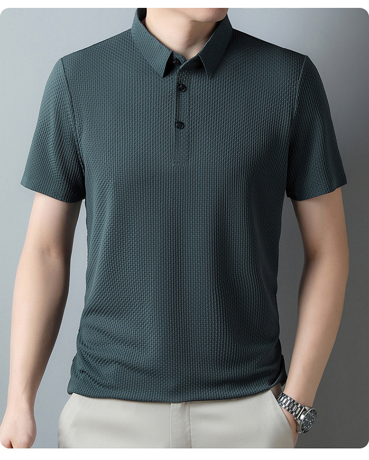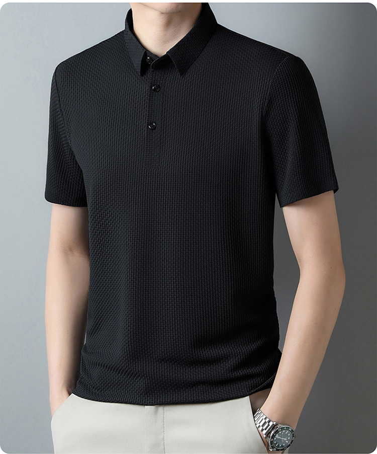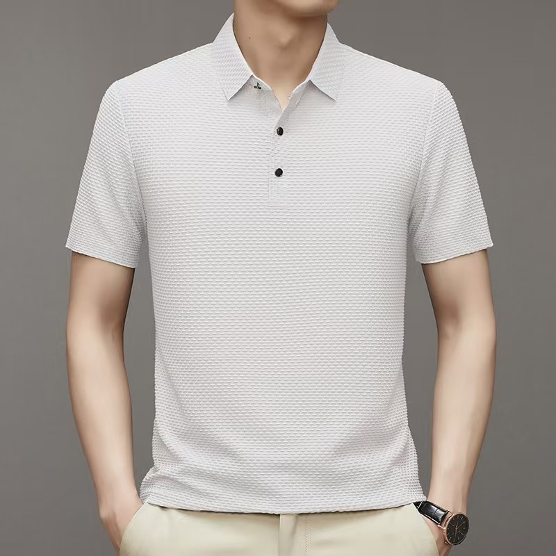 국경 새 여름 아이스 실크 남성용 폴로 셔츠 캐주얼 남성용 자카드 엘 다림질 반팔 티셔츠