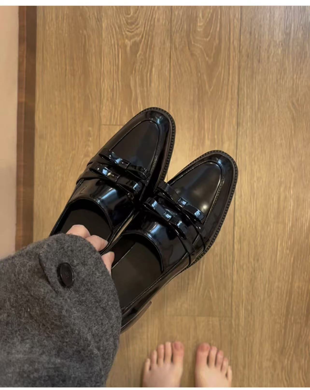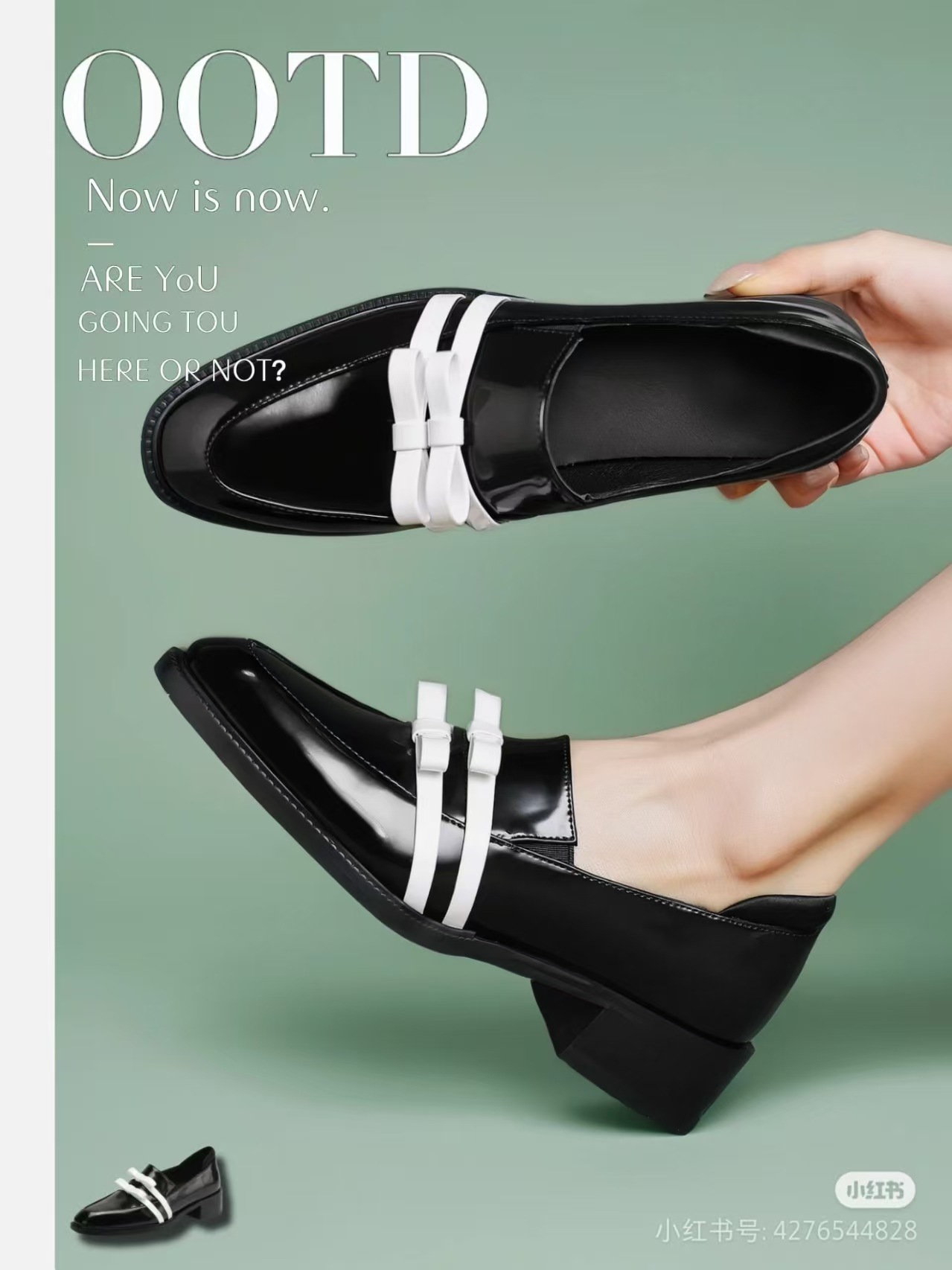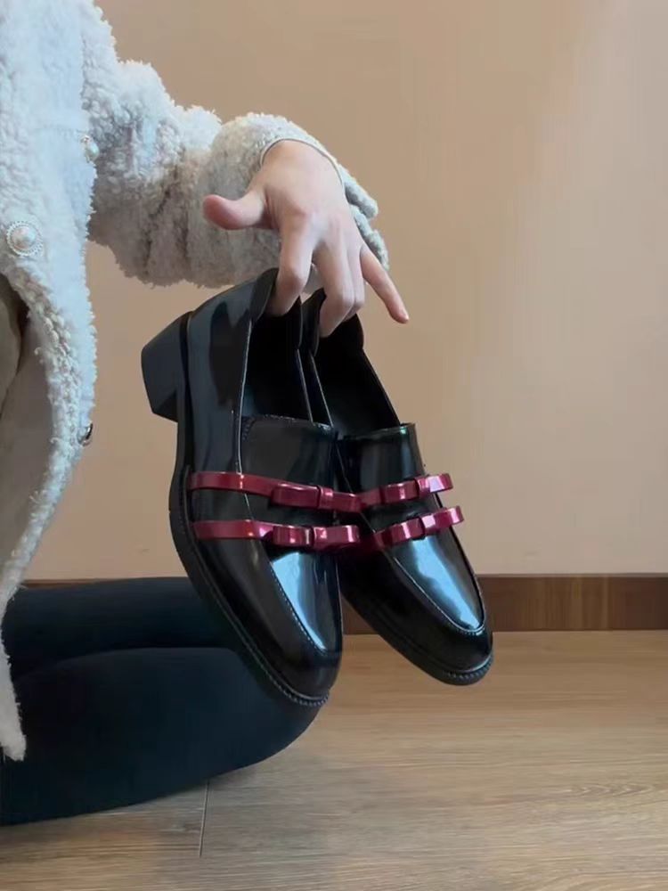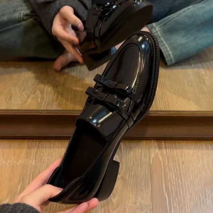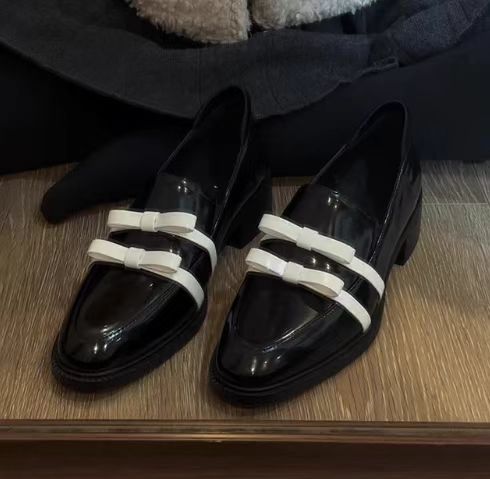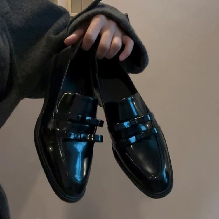영국 스타일의 천연 가죽 로퍼 여성용 슬립온 통근화 프렌치 스타일 리본 굽이 두꺼운 작은 가죽 신발 통기성 좋고 편안함스토어 가기