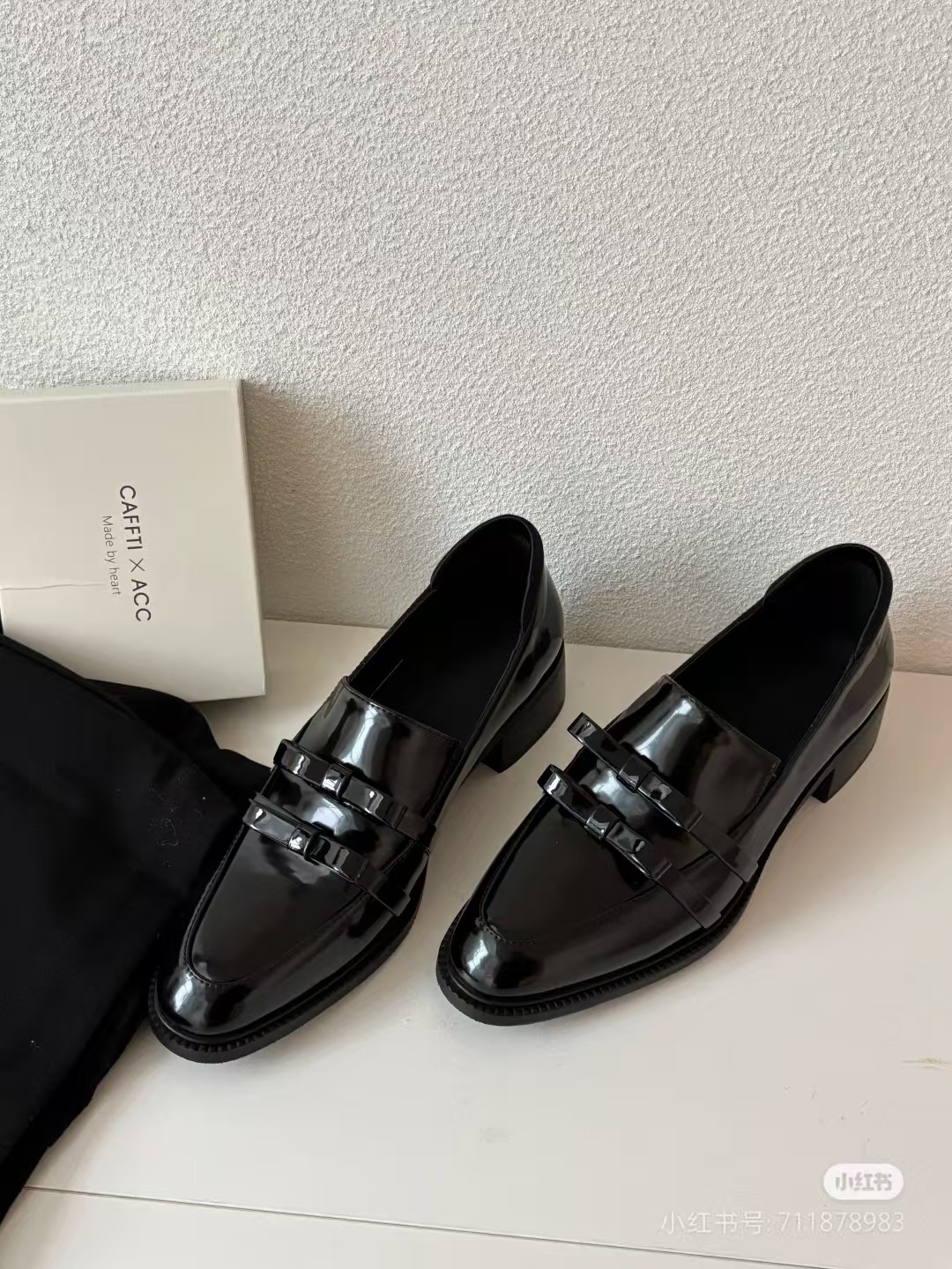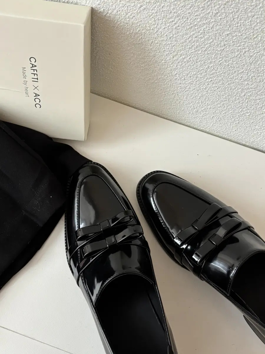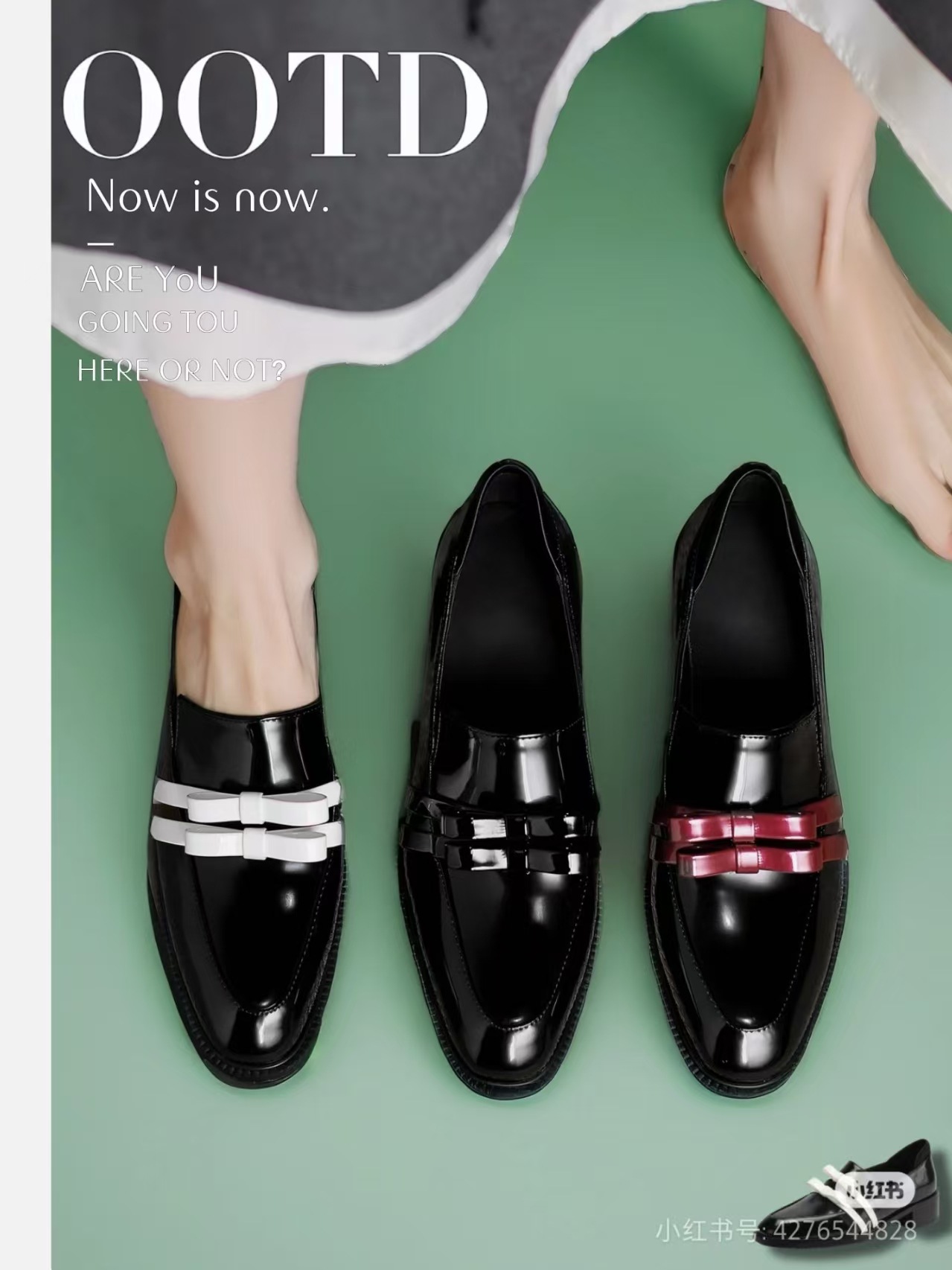 영국 스타일의 천연 가죽 로퍼 여성용 슬립온 통근화 프렌치 스타일 리본 굽이 두꺼운 작은 가죽 신발 통기성 좋고 편안함스토어 가기