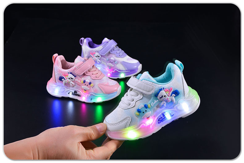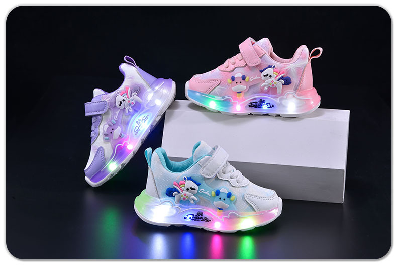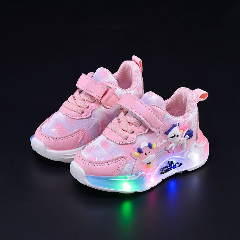 소녀 2025 새로운 만화 새로운 캐주얼 부드러운 밑창 어린이 운동화 벨크로 LED 신발스토어 가기