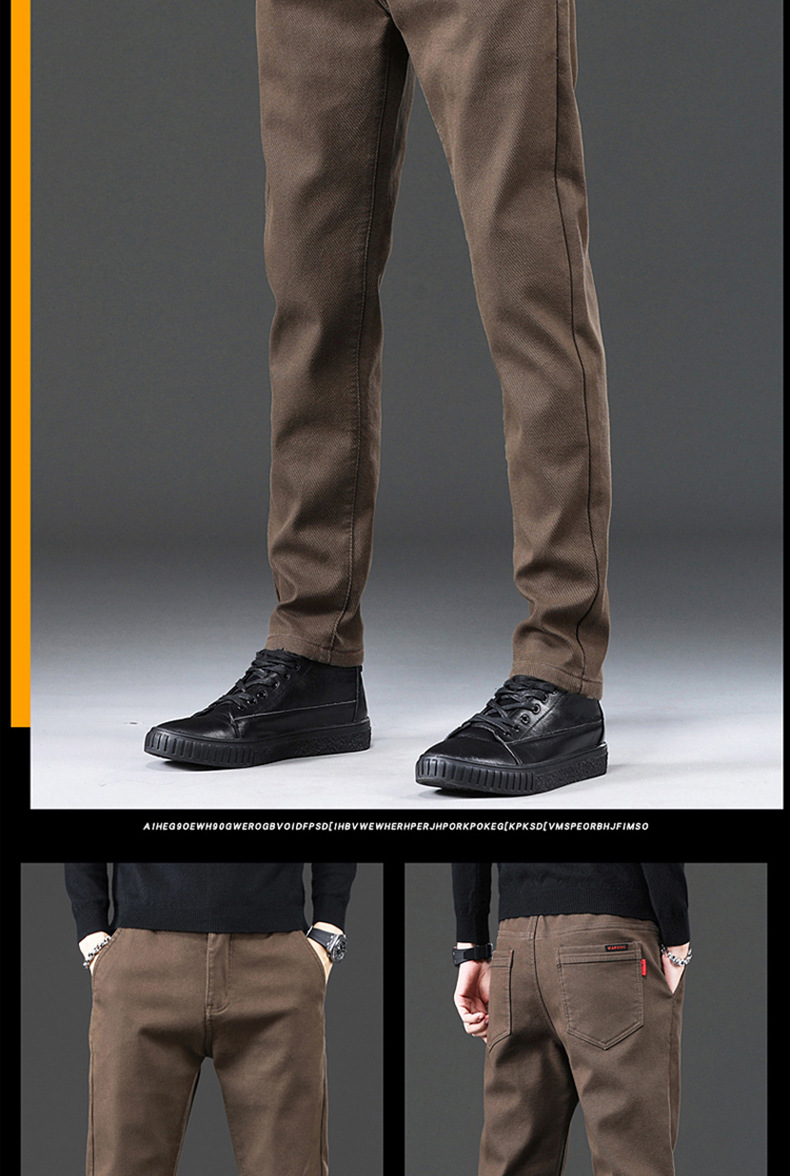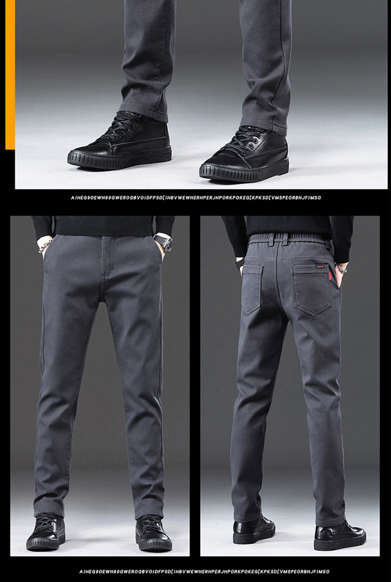 가을과 겨울 남성 캐주얼 바지 탄성 허리 2024 새로운 기모 스트레이트 슬림 남성용 스트레치 남성용 바지 긴 바지