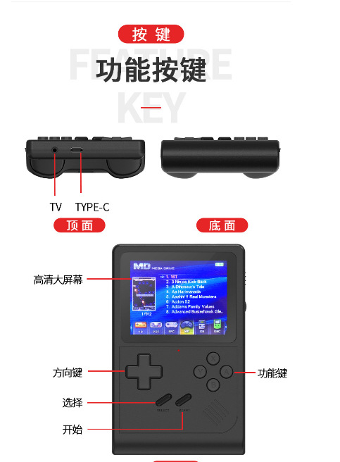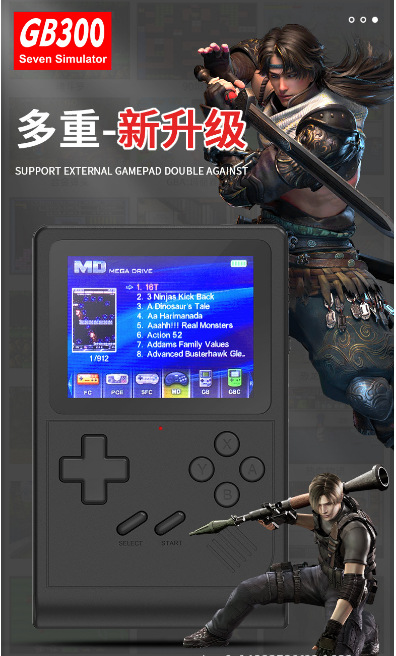 국경 간 새로운 GB300 휴대용 게임 콘솔 HD 6000 게임 휴대용 복고풍 향수 아케이드 휴대용 16 비트