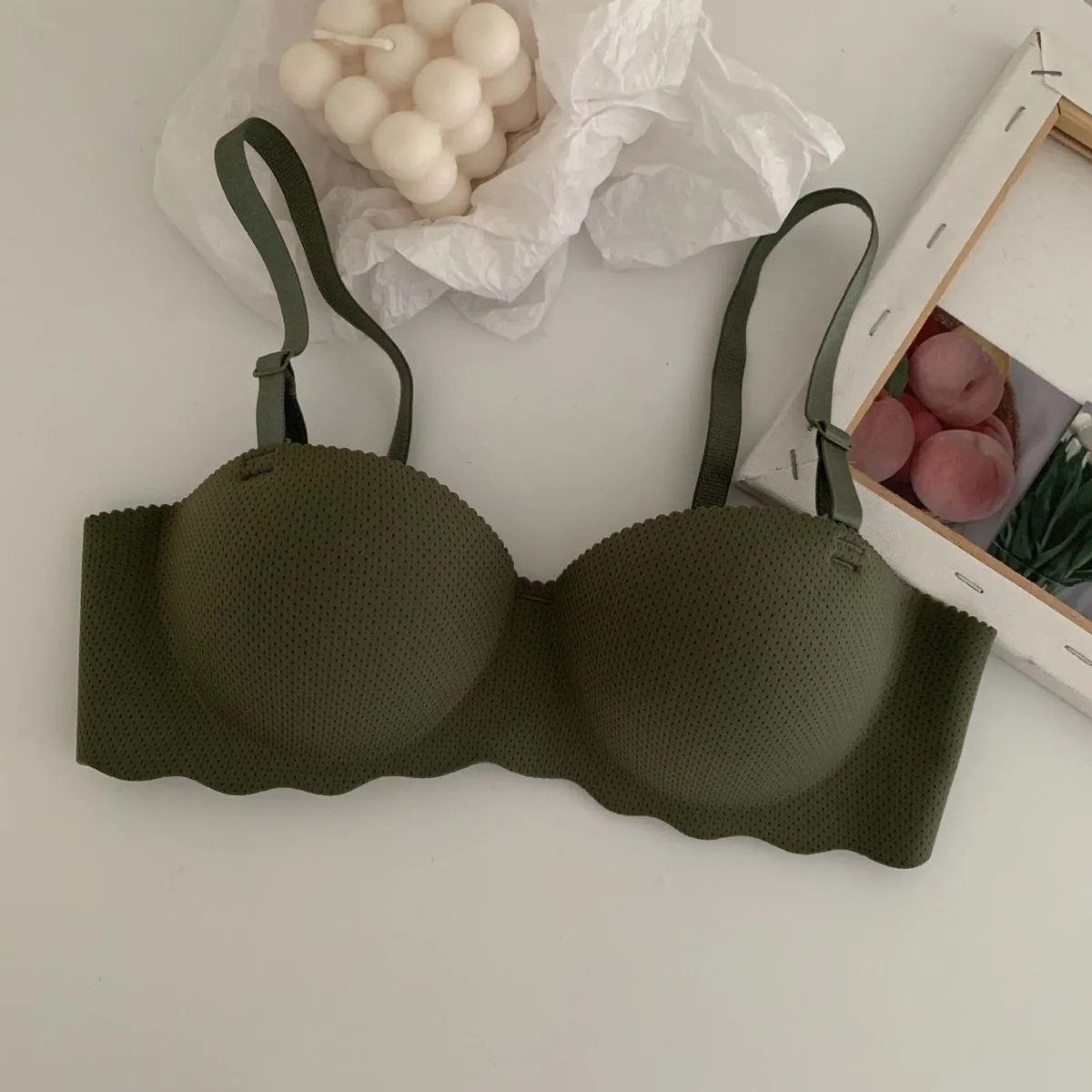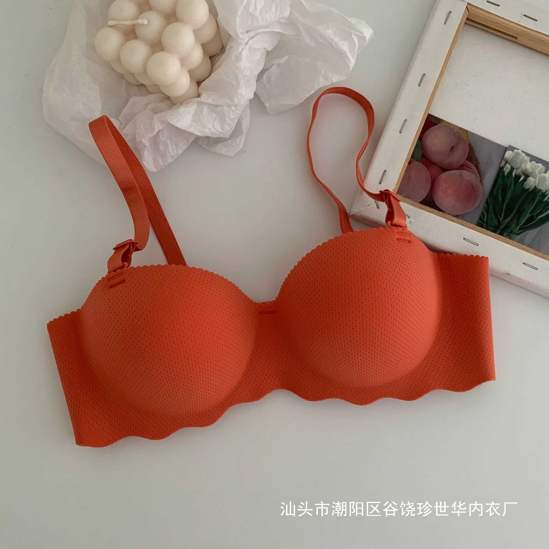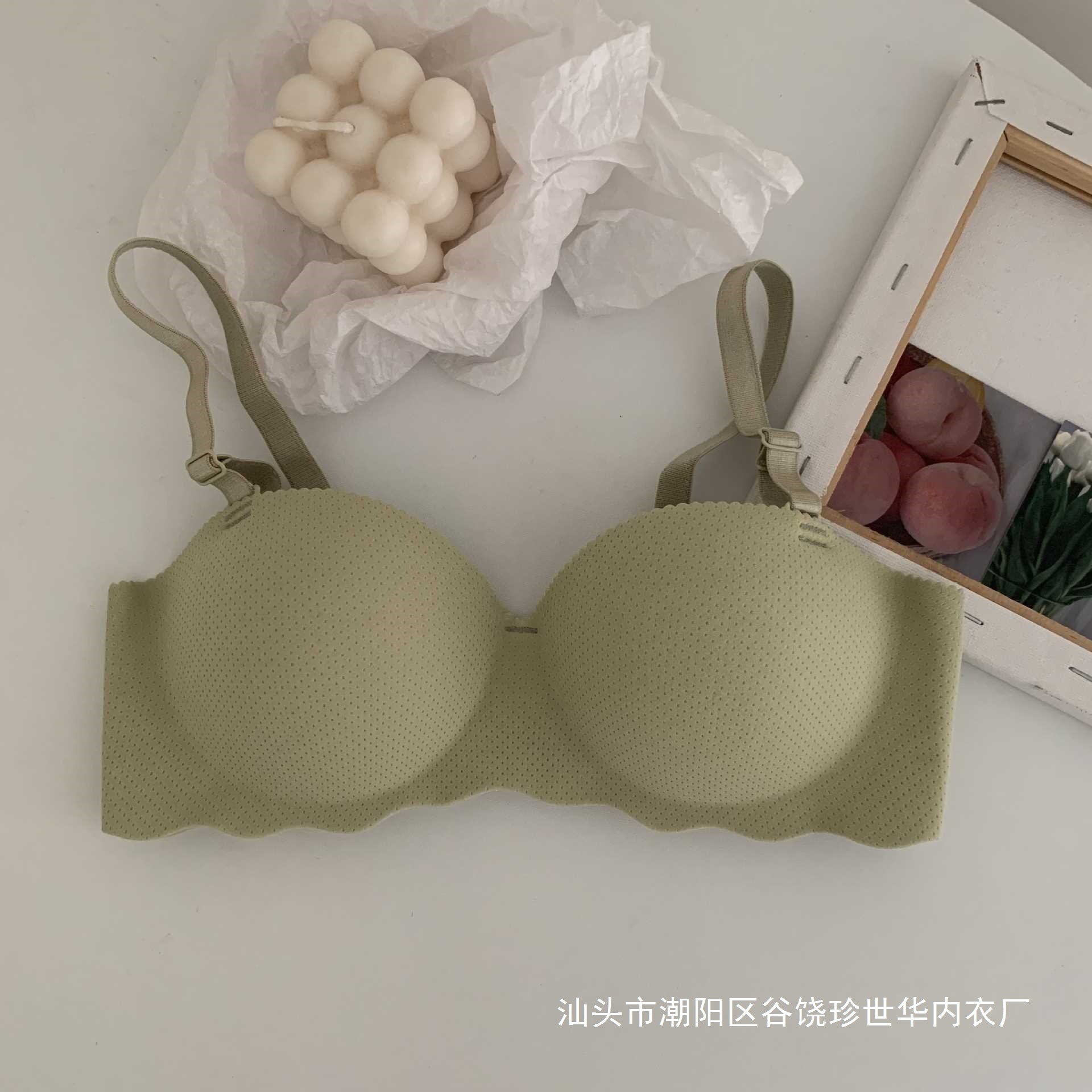 간단한 원피스 일본 소녀 속옷 캔디 컬러 작은 가슴 강철 반지가없는 두꺼운 브래지어와 고등학생을위한 추적없는스토어 가기