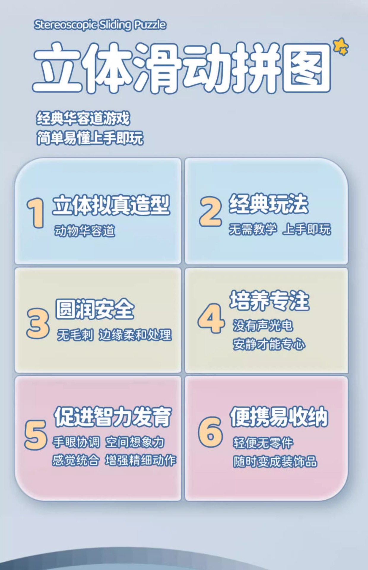 만화 3D Huarongdao 슬라이딩 퍼즐 3~6세 어린이 교육 장난감 초등학생 논리적 공간적 사고 훈련