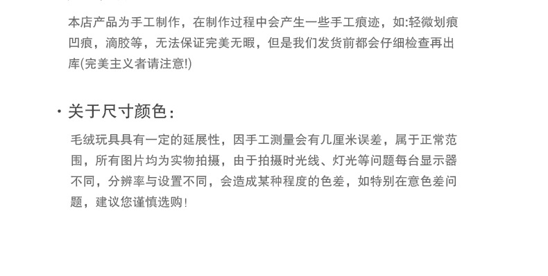 手工制作偶有溢胶、线头、浮毛属于正常现象