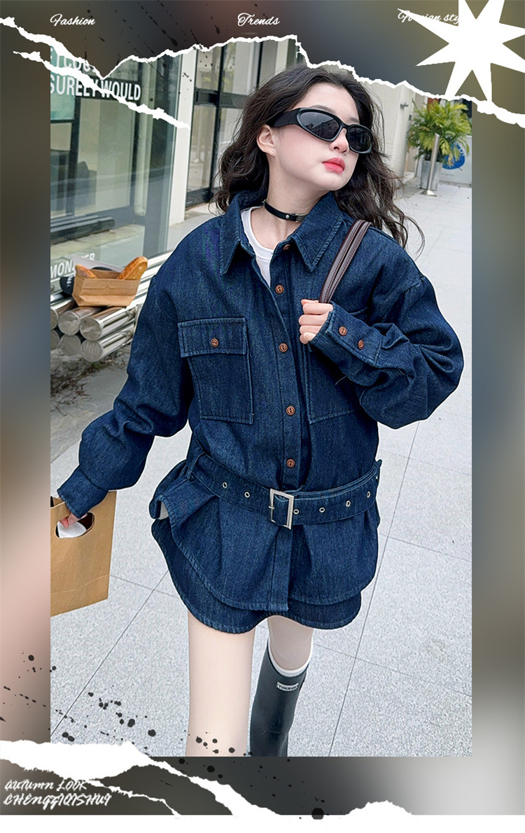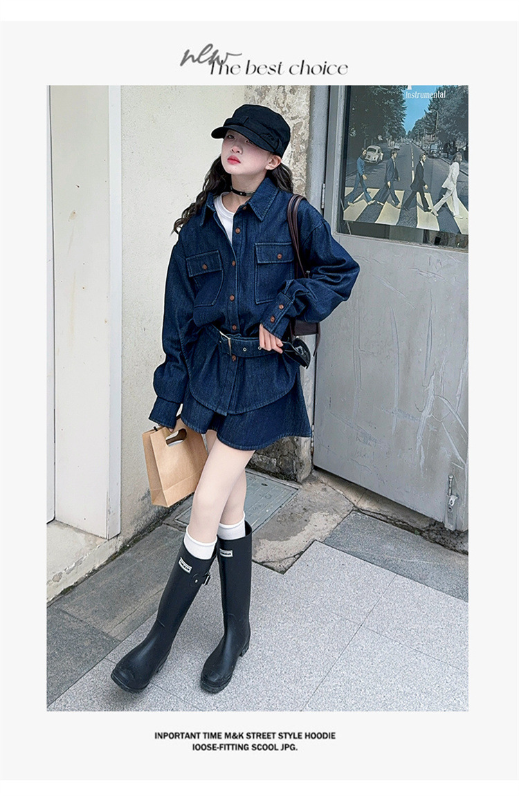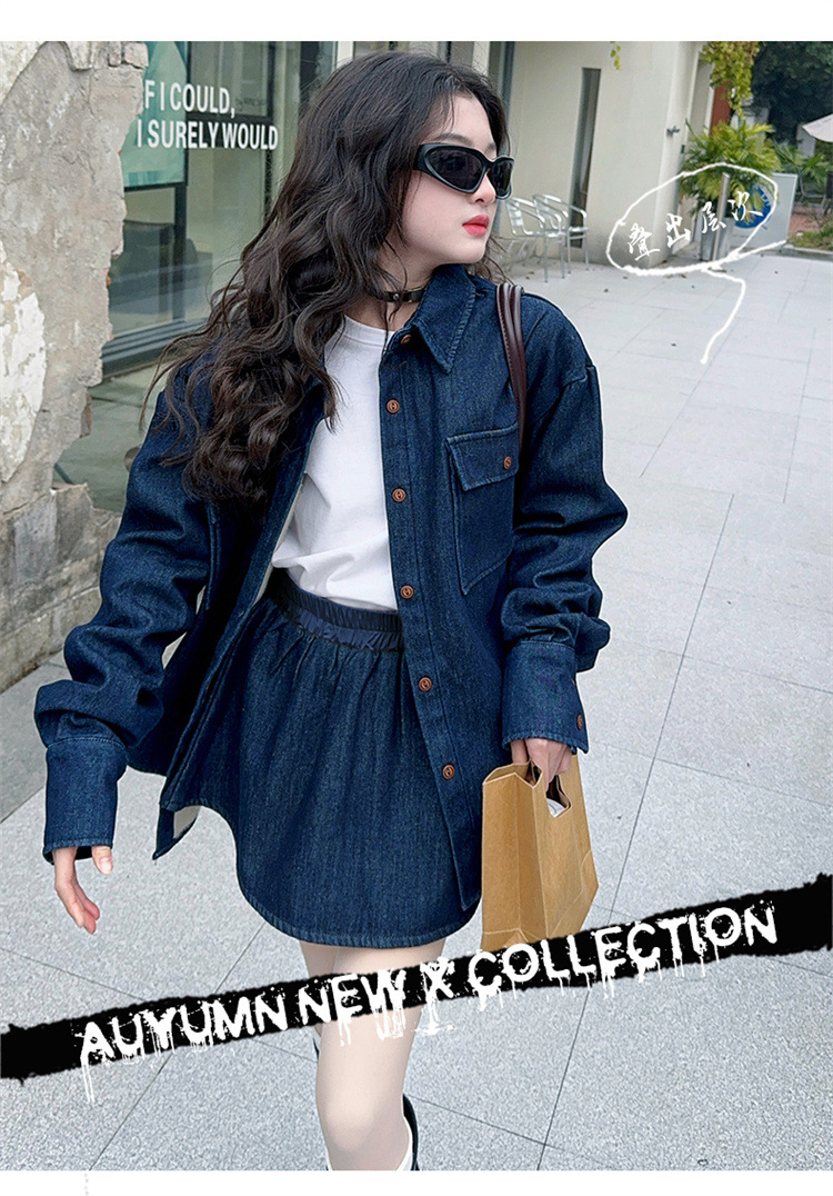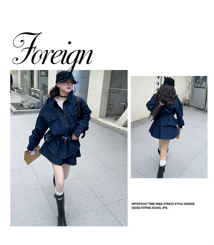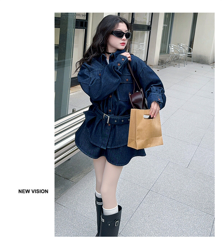 여자 데님 셔츠 치마 세트 2025 봄 한국 스타일 슬리밍 허리 작은 향기로운 스타일 우아한 스커트 투피스 트렌디스토어 가기