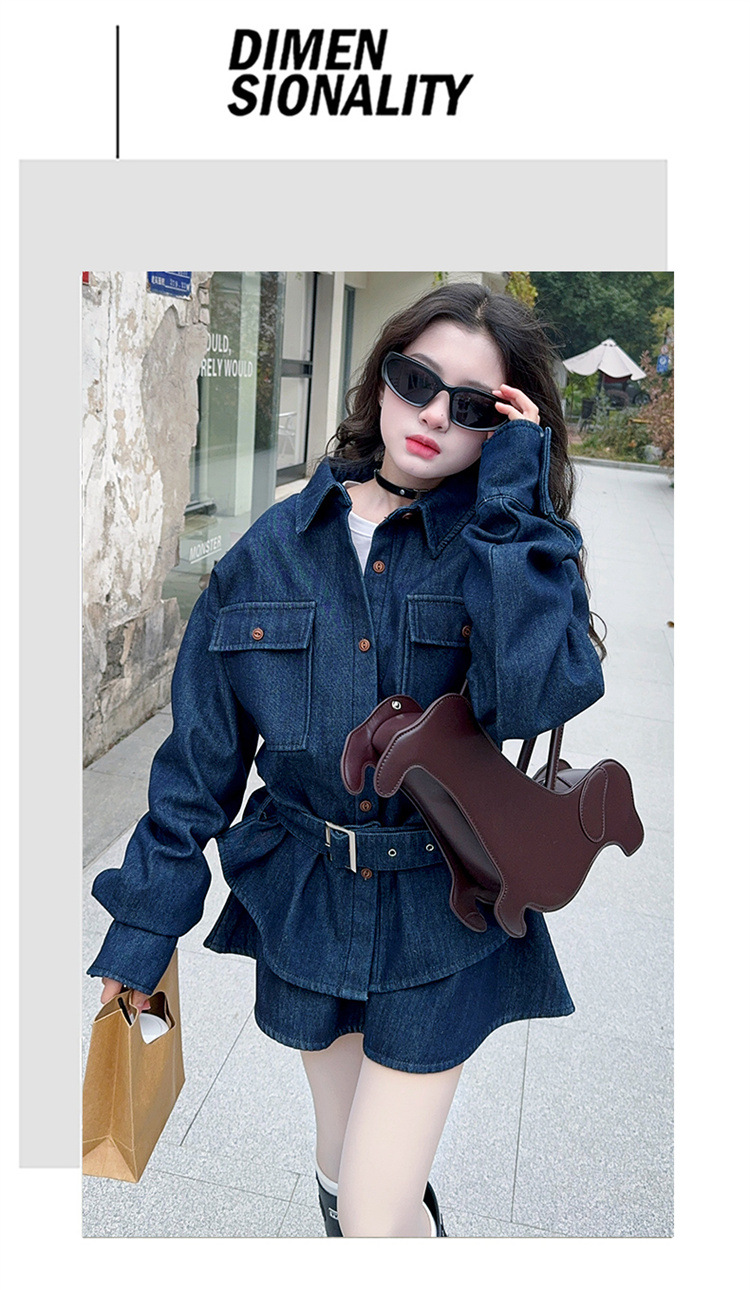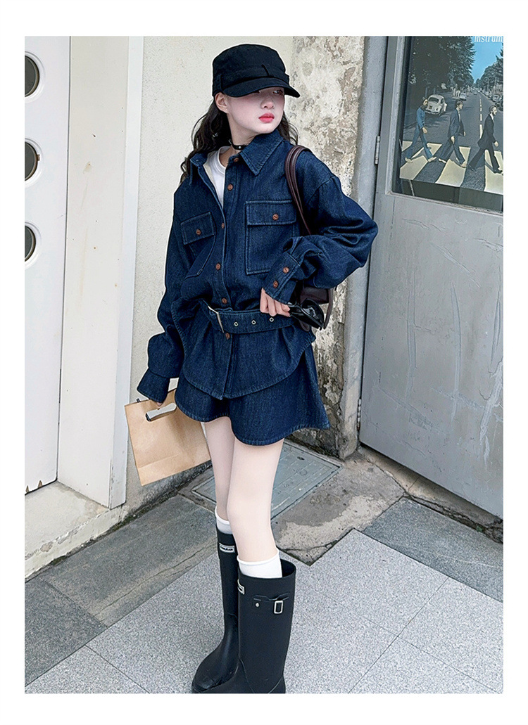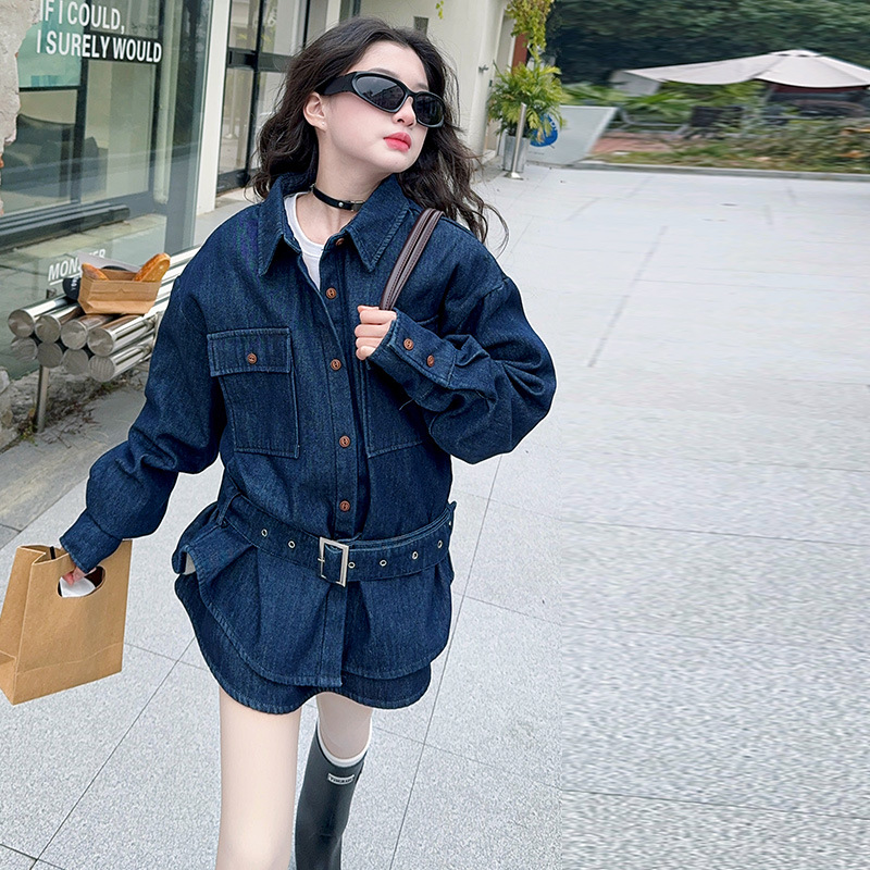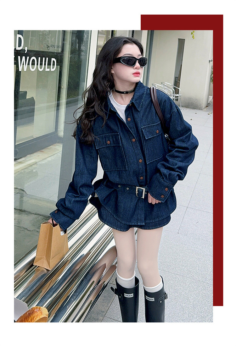 여자 데님 셔츠 치마 세트 2025 봄 한국 스타일 슬리밍 허리 작은 향기로운 스타일 우아한 스커트 투피스 트렌디스토어 가기
