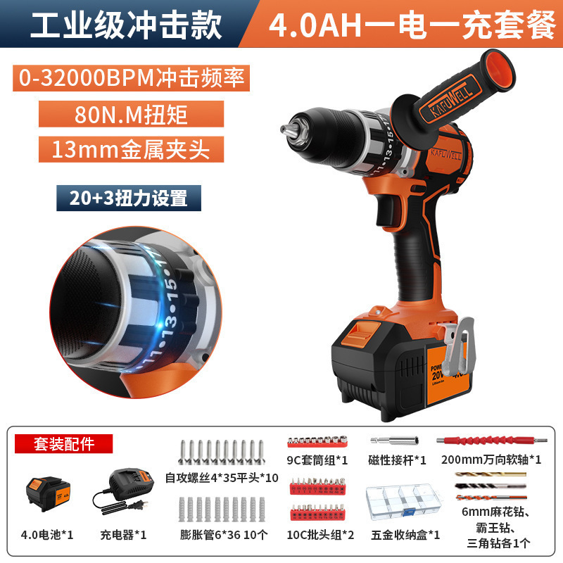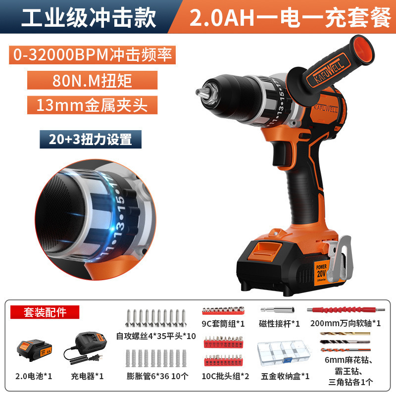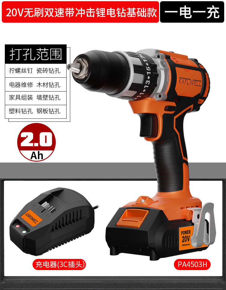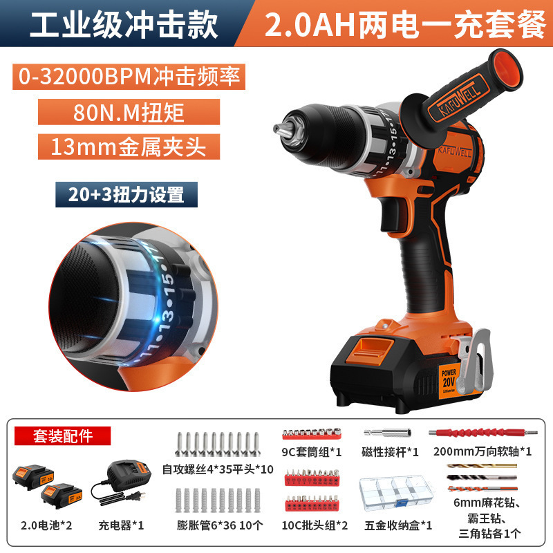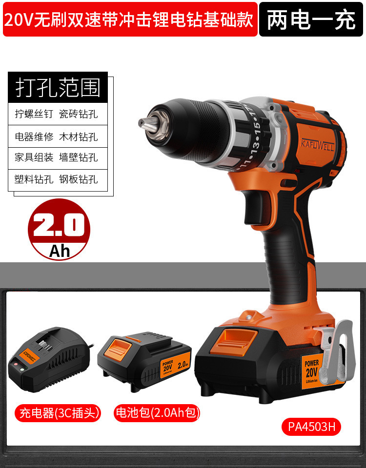 Kafwell 산업 등급 리튬 배터리 브러시리스 핸드 전기 드릴 다기능 충격 드릴 높은 전원 도구 전기 해머 503스토어 가기
