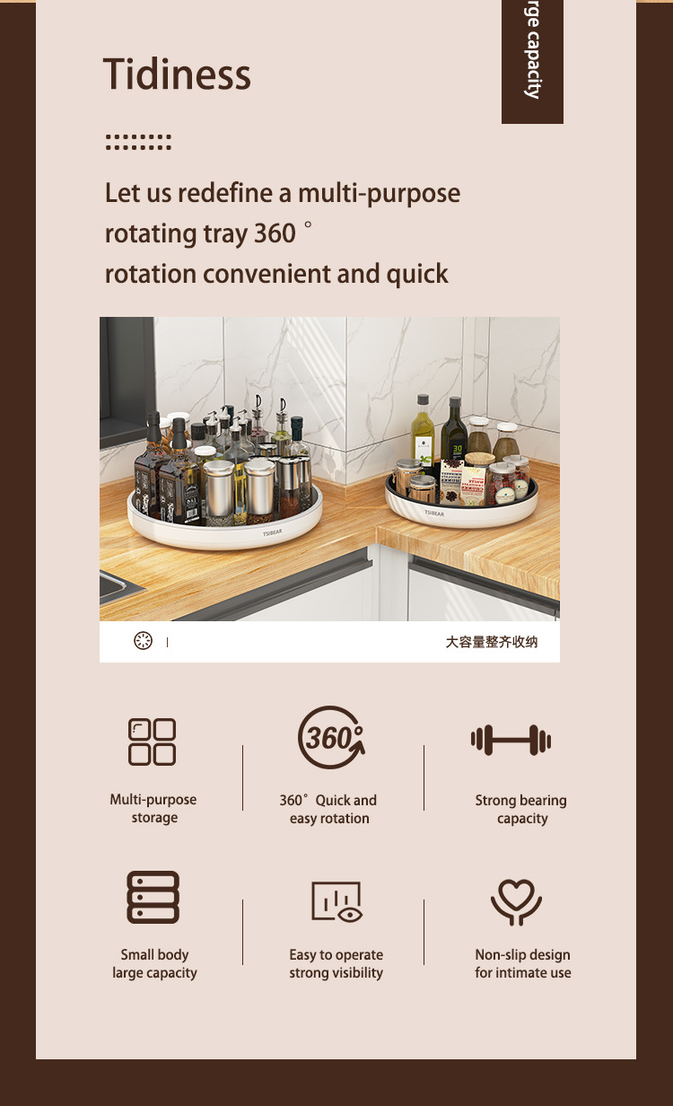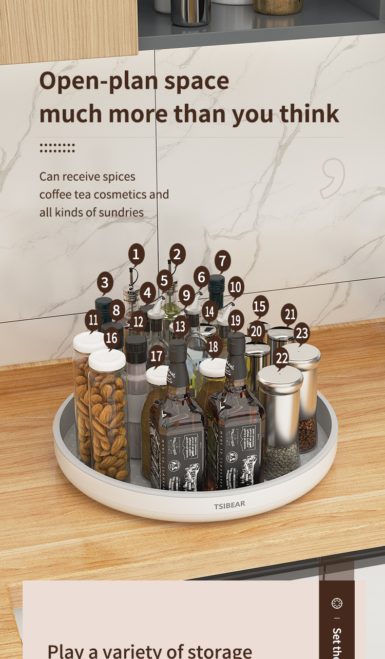 국경 간 다기능 회전 향신료 트레이 주방 보관 랙 원형 랙 보관 마감 턴테이블 도매 라벨링
