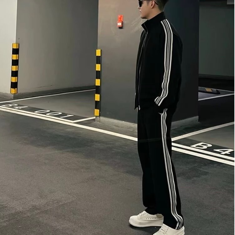 가을과 겨울 남자 올 매치 스포츠 레저 세트 패션 커플 느슨한 투피스 청소년 패션 리본 세트스토어 가기