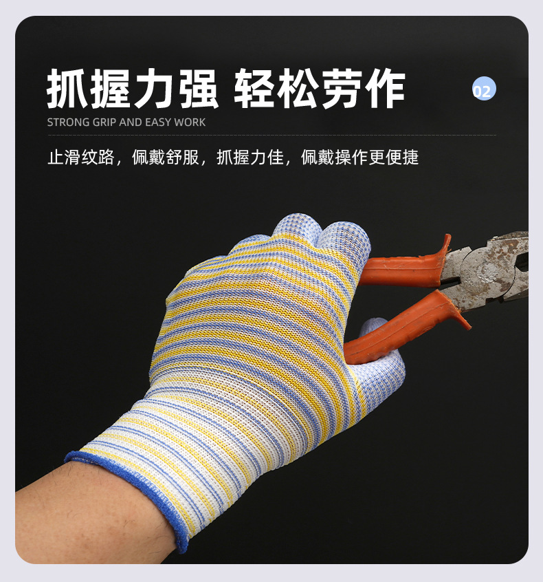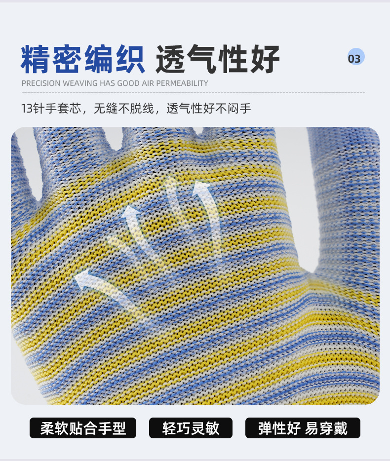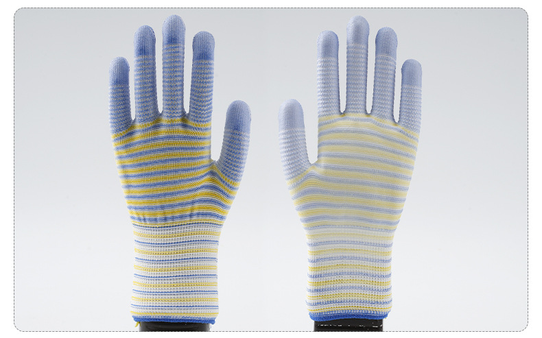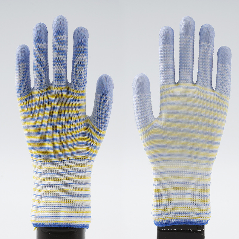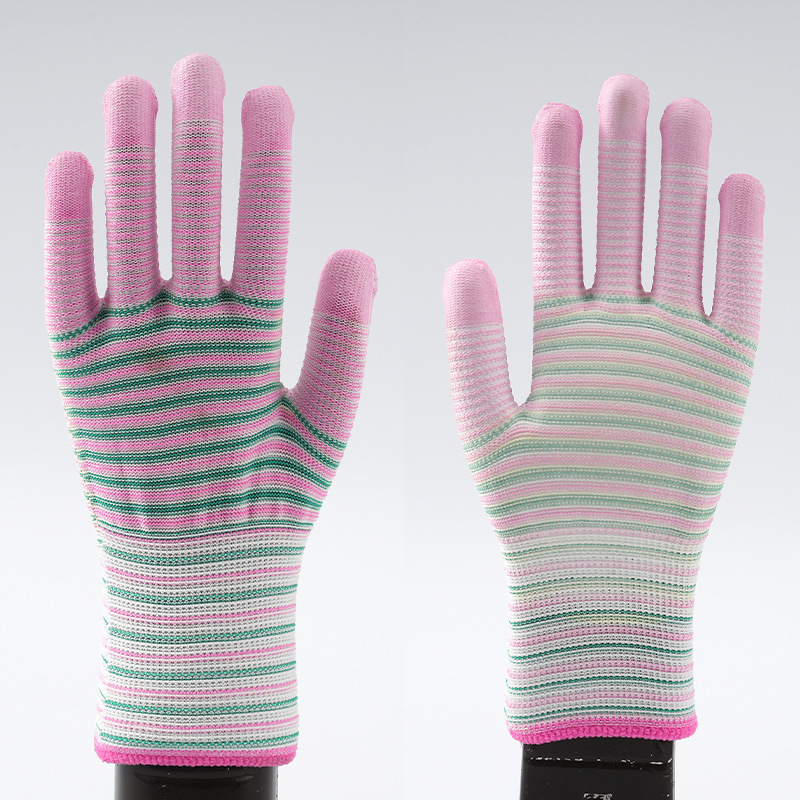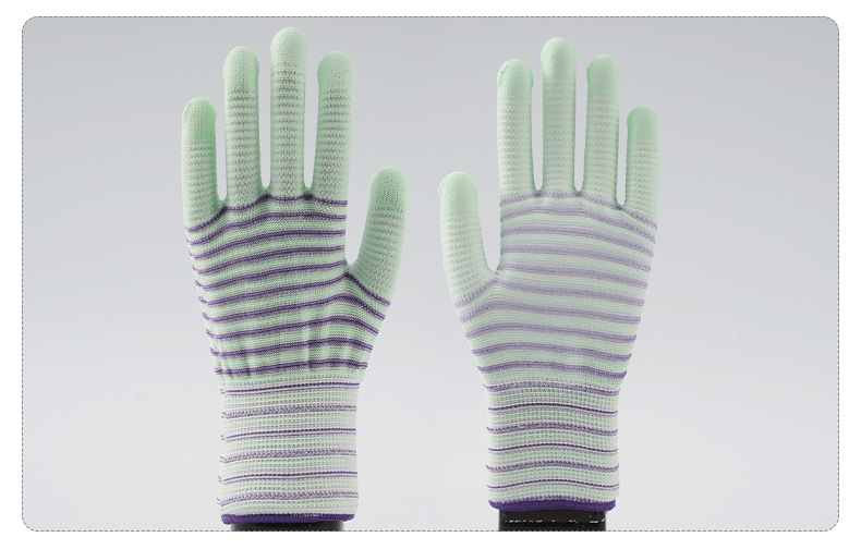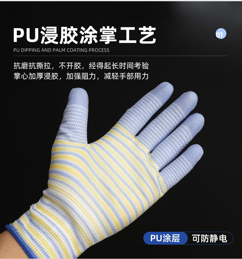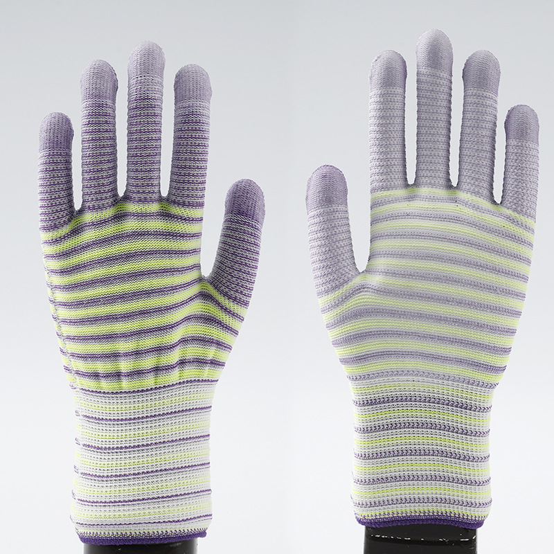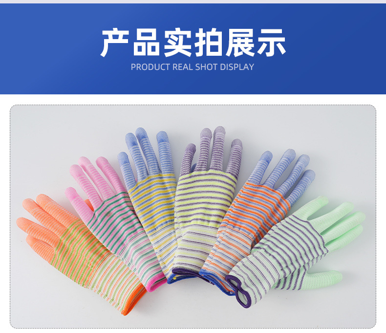 얇은 나일론 Pu13 핀 얼룩말 패턴 딥 코팅 팜 코팅 손가락 장갑 정전기 방지 통기성 탄성 노동 보호 장갑