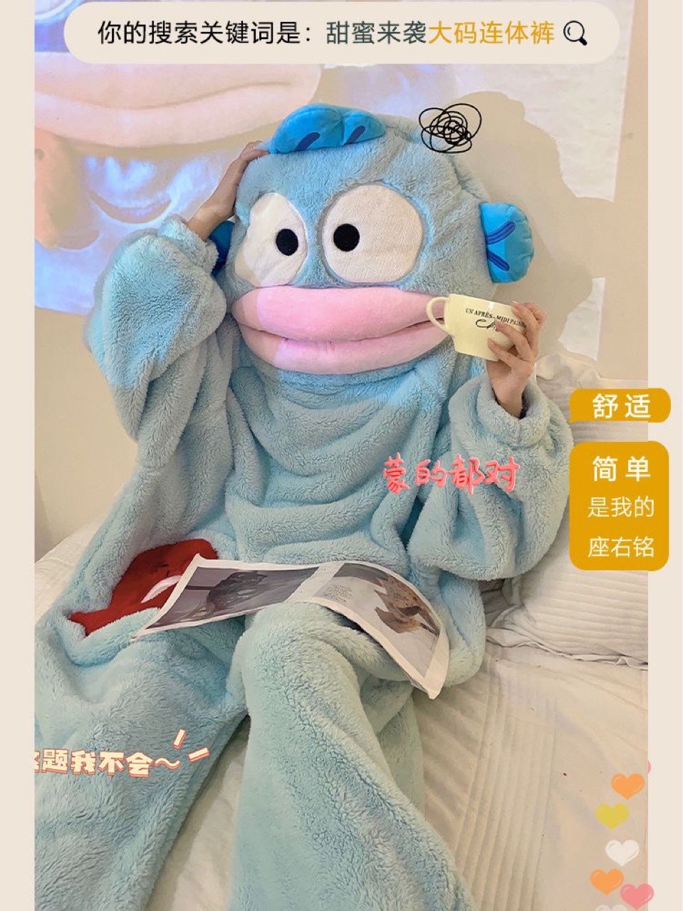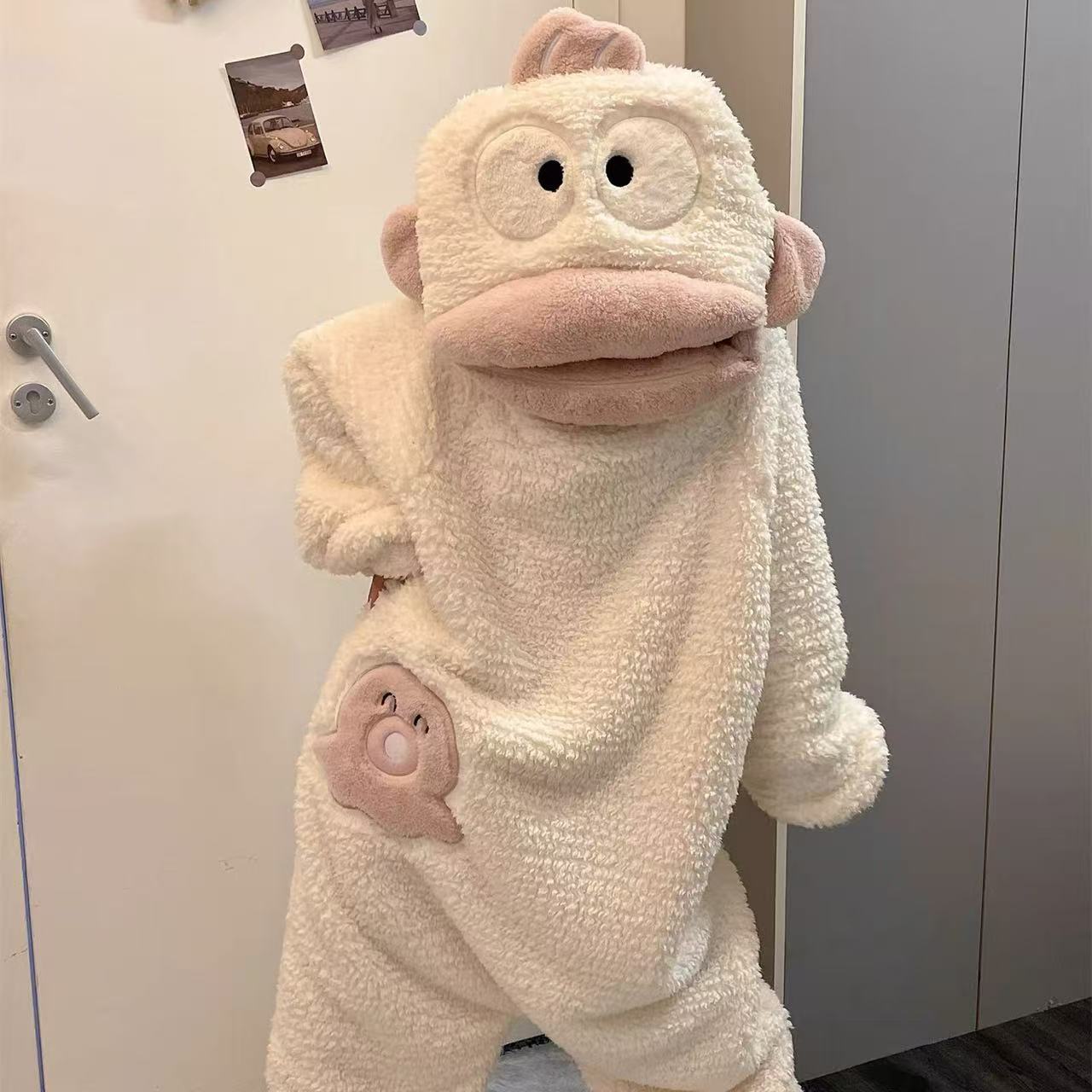 한톤 못생긴 물고기 잠옷 산호 벨벳 어린이용 두꺼운 따뜻한 가을 겨울 귀엽고 재미있는 여자 어른 커플 잠옷스토어 가기