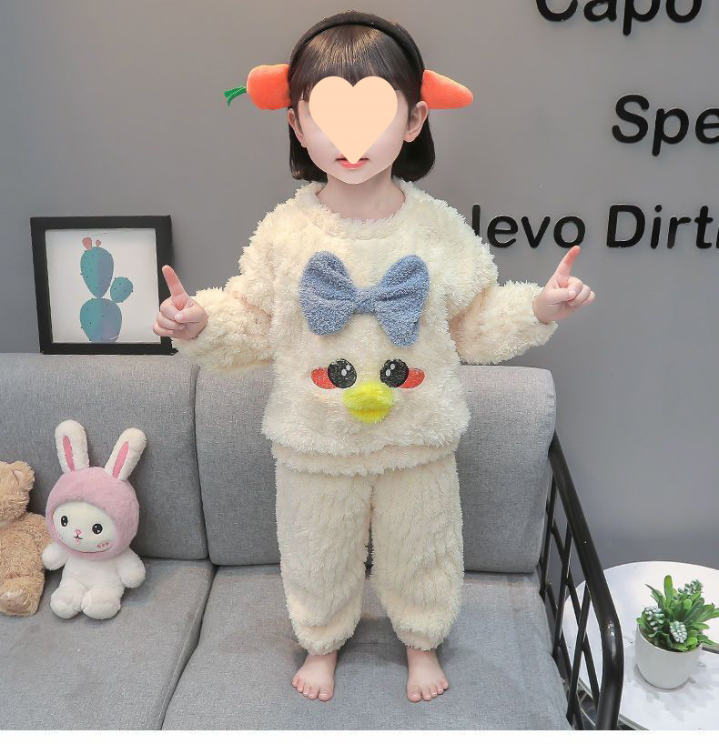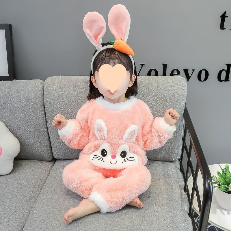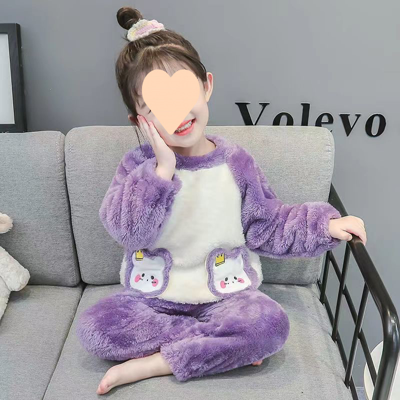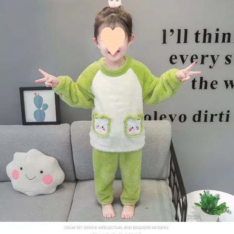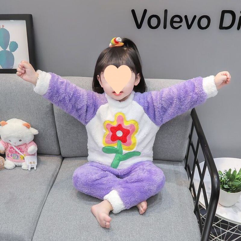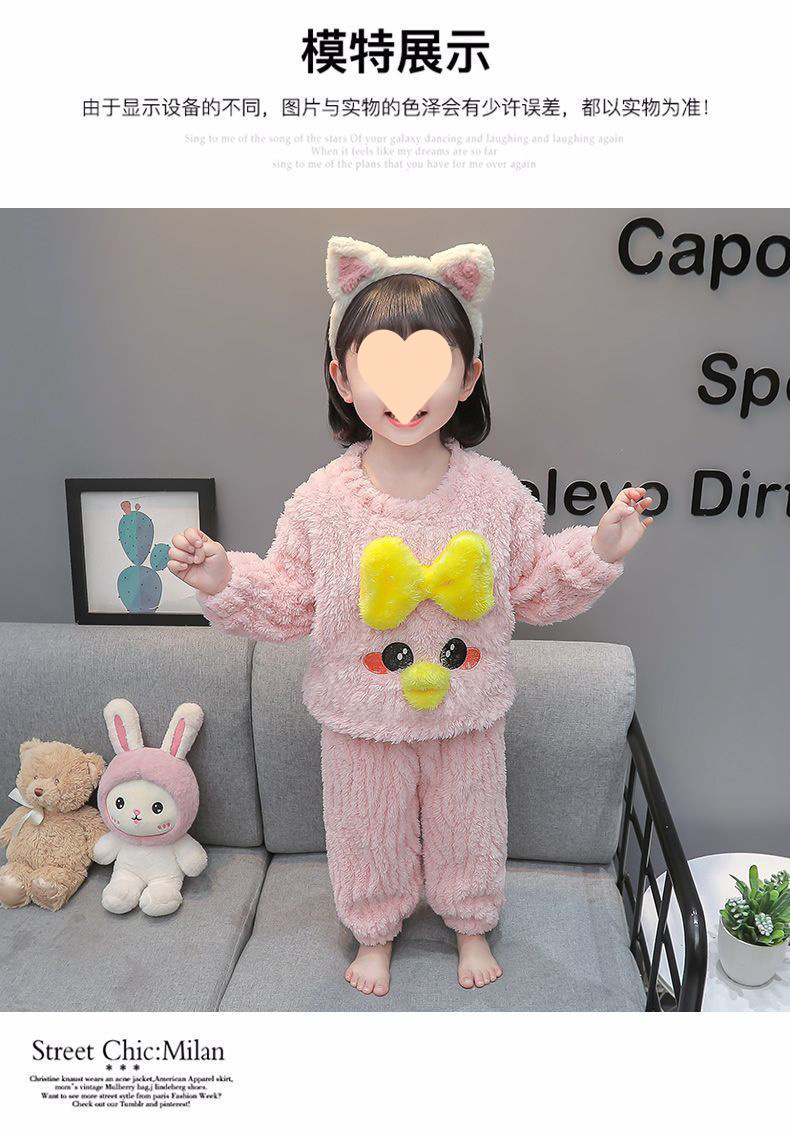 어린이 잠옷 가을과 겨울 두꺼운 소녀 플란넬 귀여운 소녀 아기 산호 양털 홈 의류 세트스토어 가기