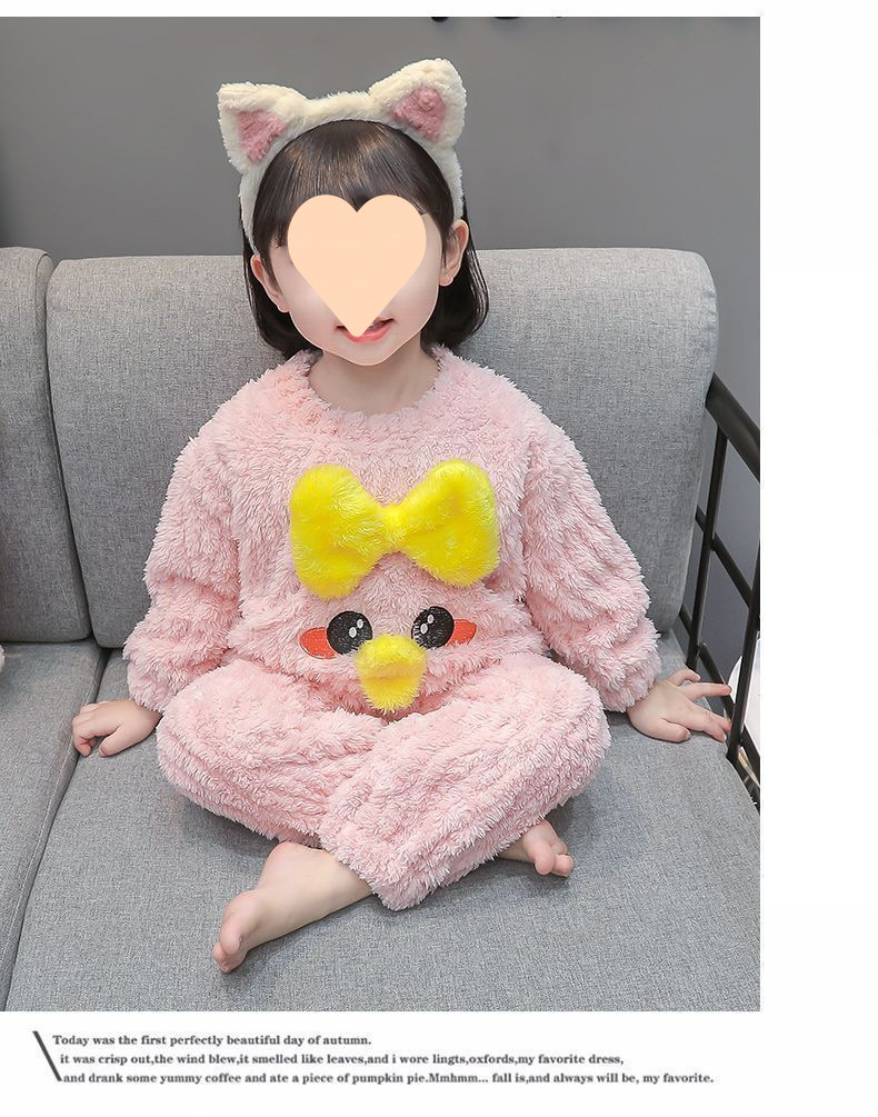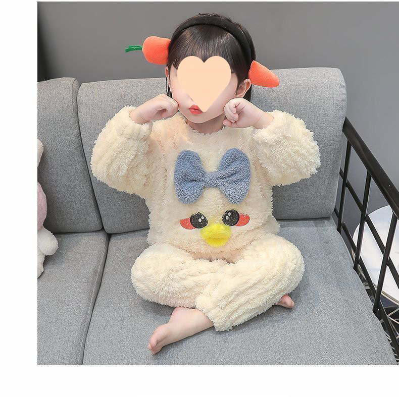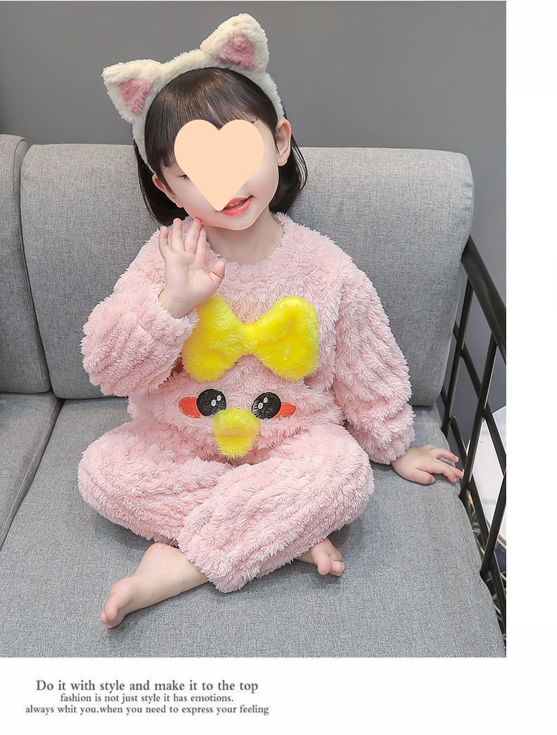 어린이 잠옷 가을과 겨울 두꺼운 소녀 플란넬 귀여운 소녀 아기 산호 양털 홈 의류 세트