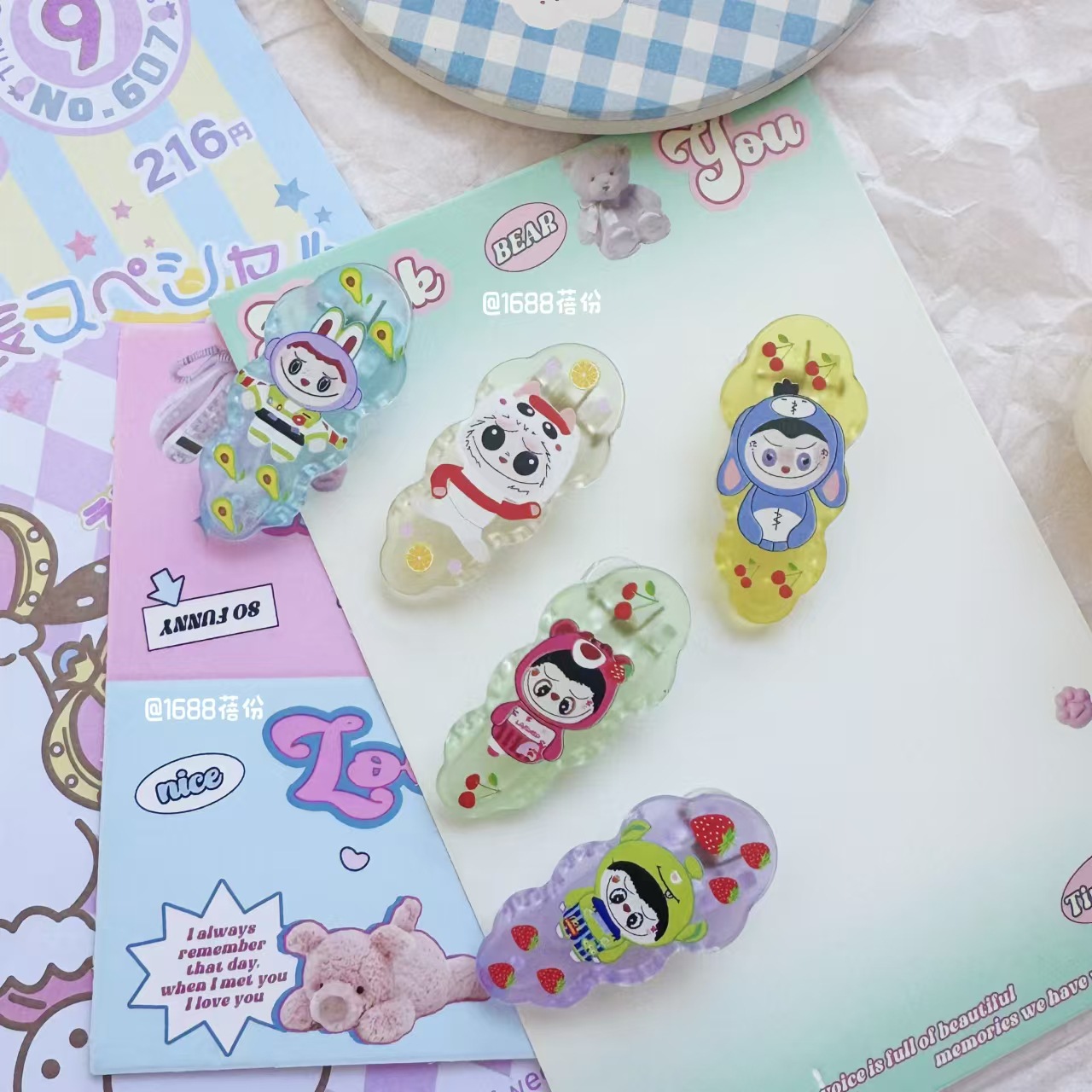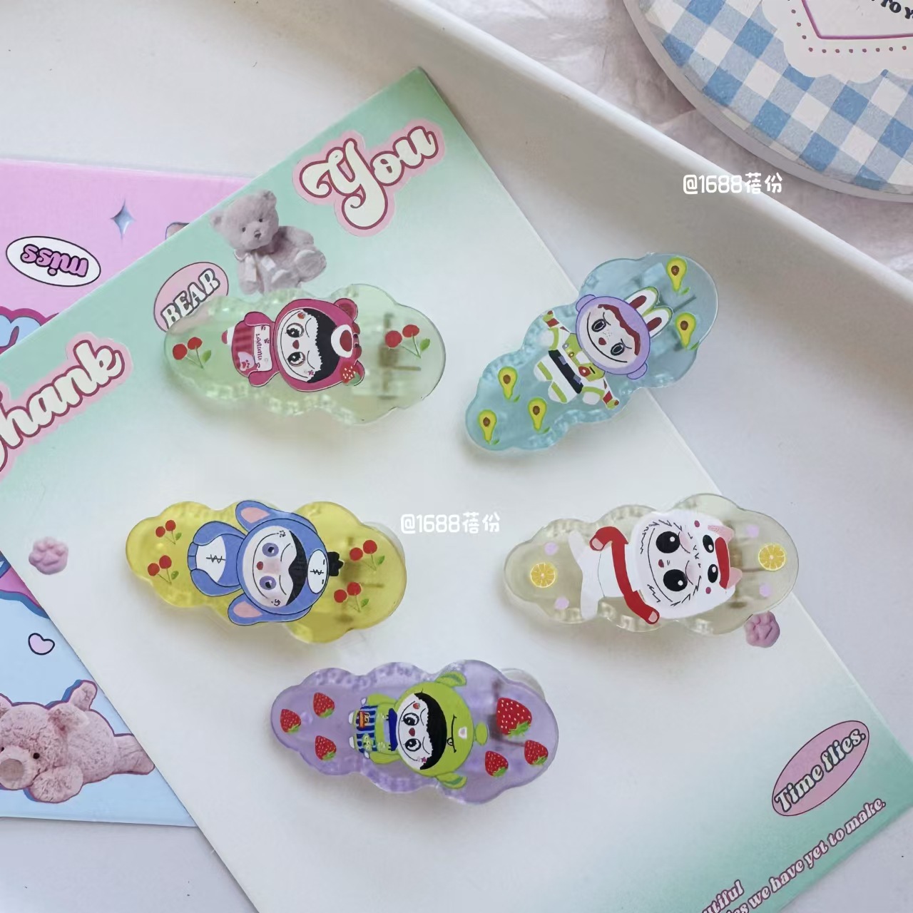 새로운 투명 컬러 Labu 헝겊 구름 머리 클립 달콤한 귀여운 소녀의 뱅 클립 만화 어린이 덕빌 클립 헤어 액세서리스토어 가기