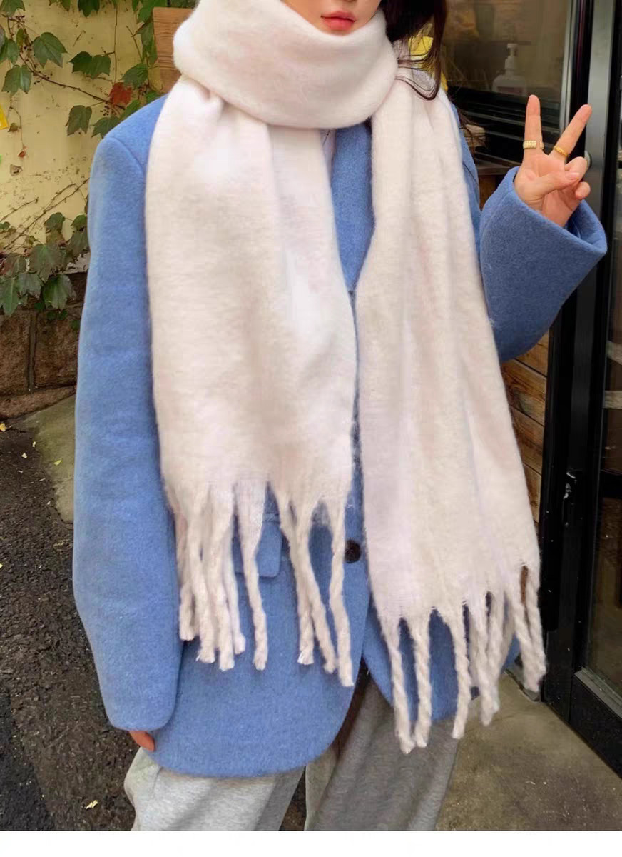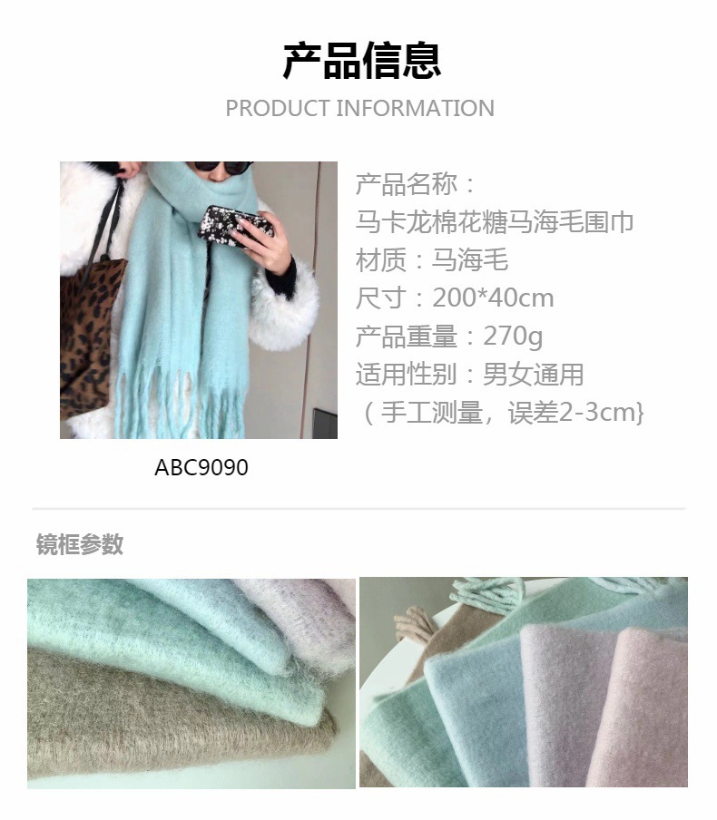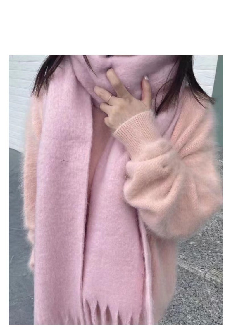 새로운 대형 에디션 두꺼운 마카롱 코튼 캔디 Mauhair Tassel 스카프 가을과 겨울 여성의 긴 목도리