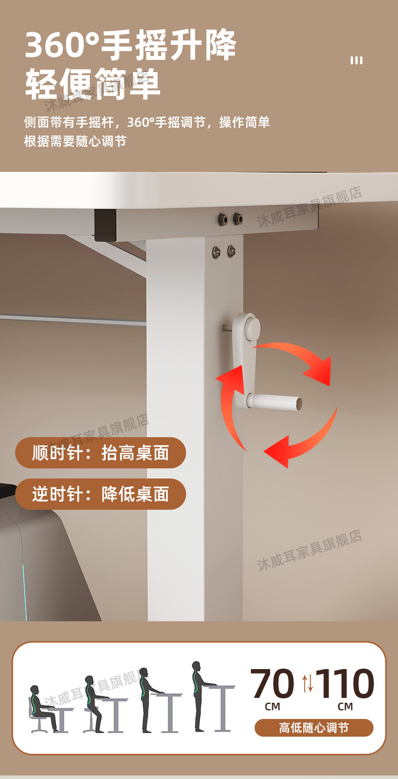 • 심플한 흰색 + 흰색 프레임 [70-110cm 올리고 내릴 수 있음] 원목 데스크탑