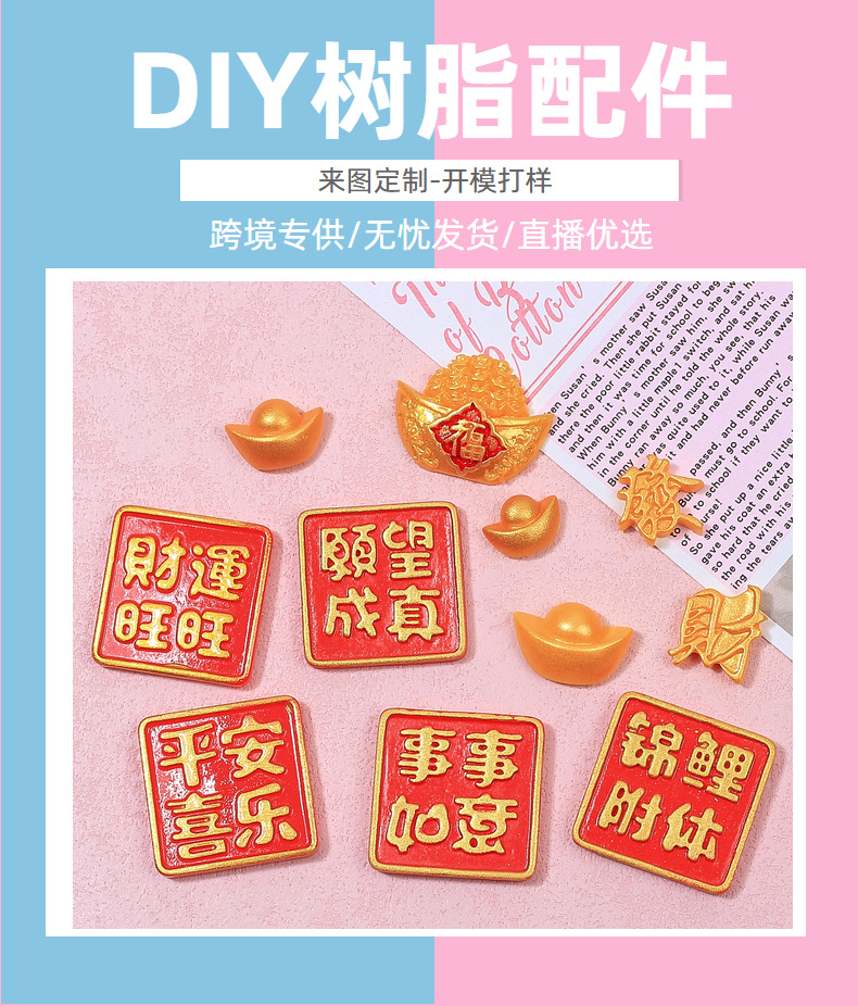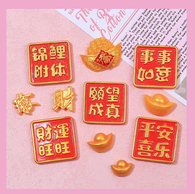 Yuanbao 플레이트 새해 크림 접착제 DIY 수제 헤어 클립 냉장고 소재 수지 액세서리 도매스토어 가기