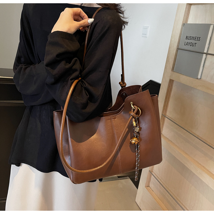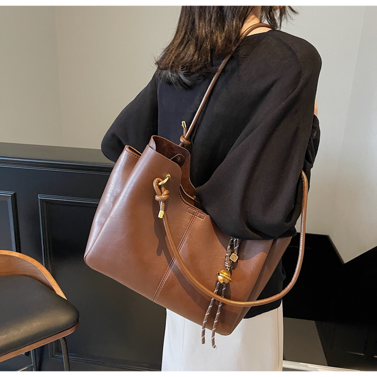 크로스보더 레트로 통근용 토트백 여성용 대용량 2025 겨울 신상 스플라이스 숄더백 패셔너블한 쇼핑백스토어 가기