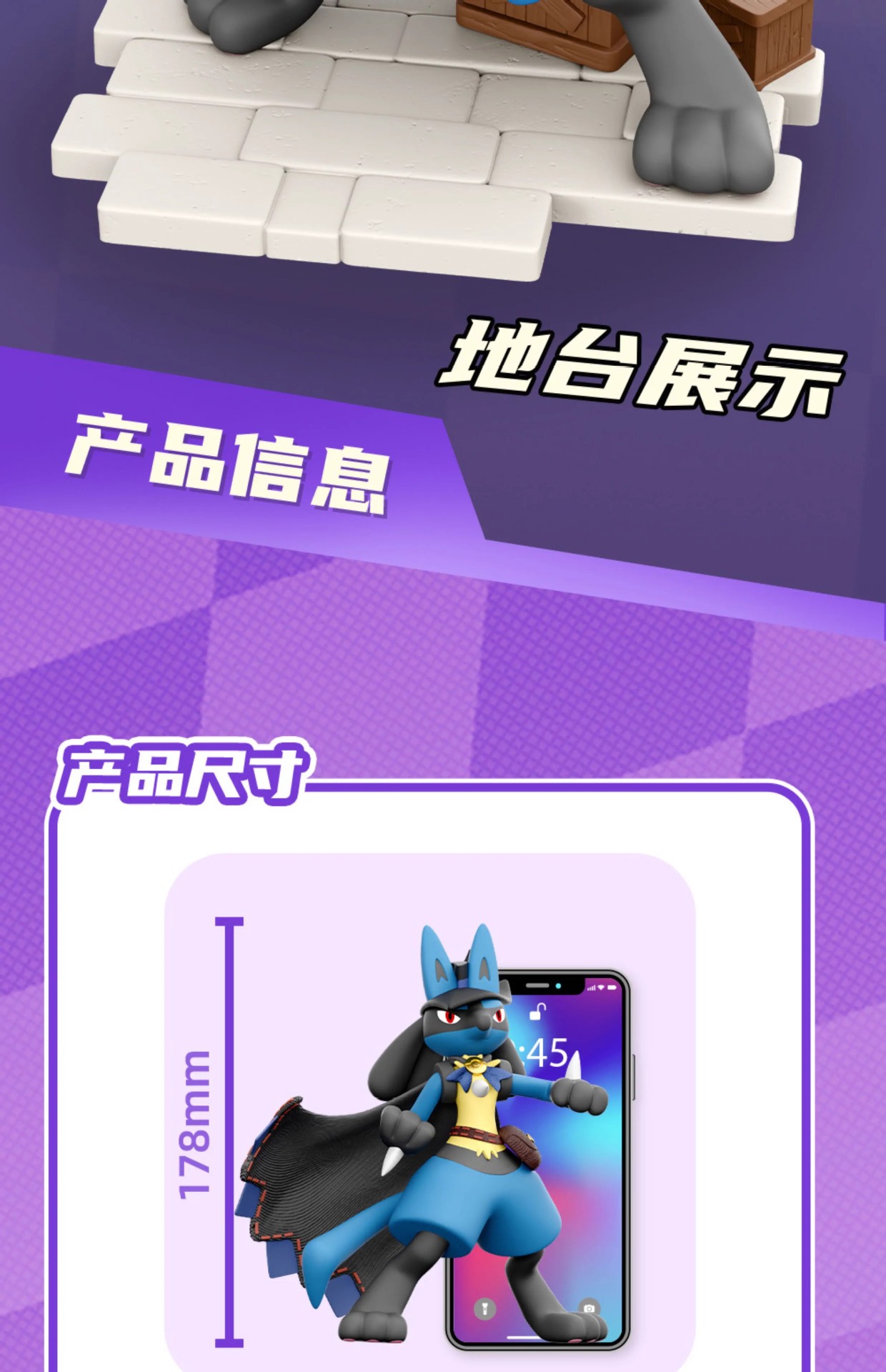 정품 포켓몬 큰 모임 Lukalio 타이드 플레이 장식품 대형 인형 데스크탑 밝은 상자 컬렉션 핸드 헬드