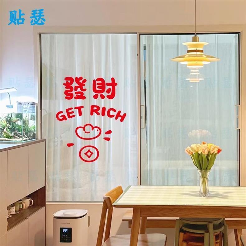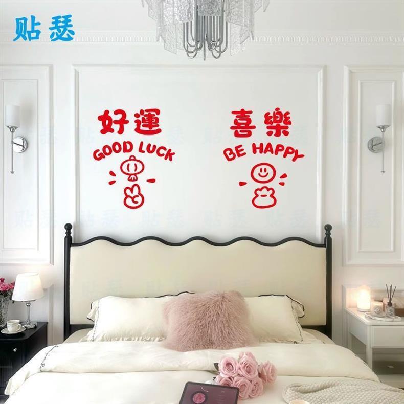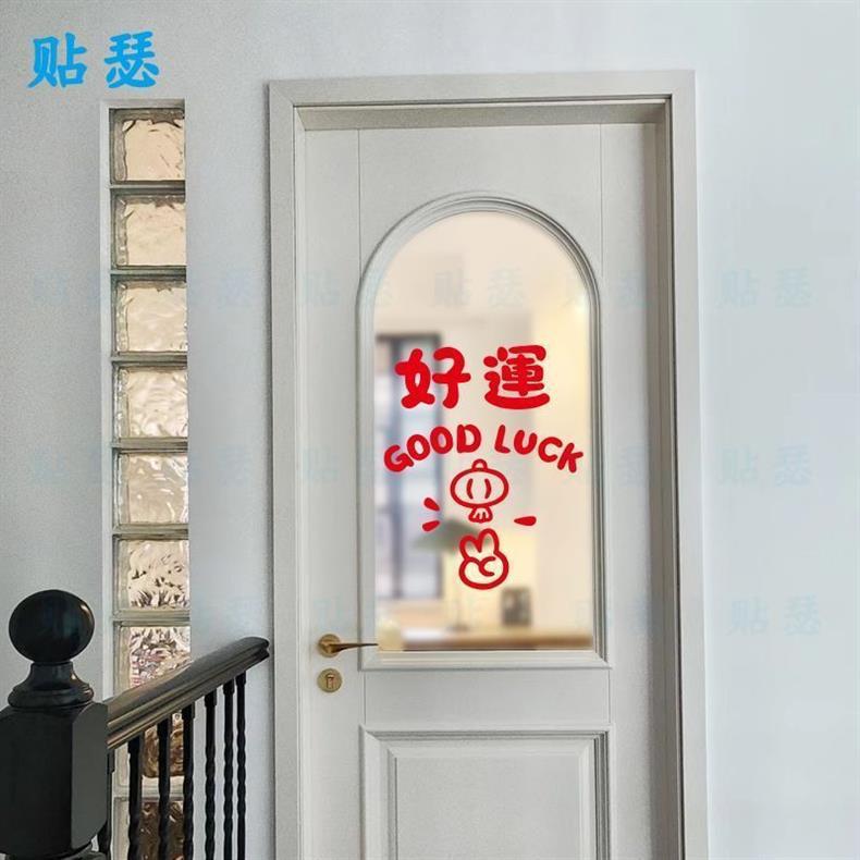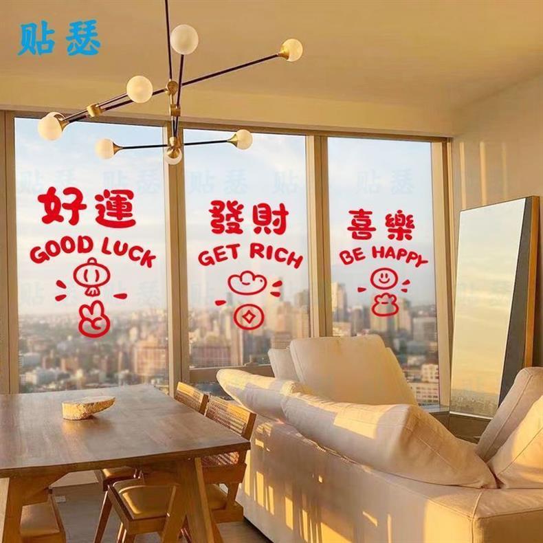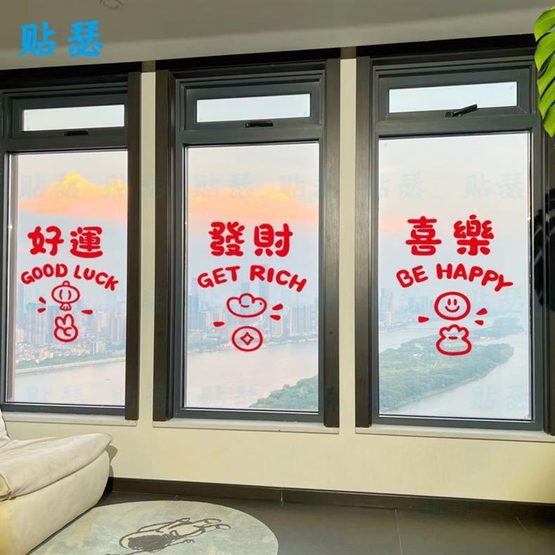 좋은 행운 행복한 좋은 럭크 텍스트 벽 스티커 홍콩 스타일 가게 벽 유리 문 창 장식 스티커