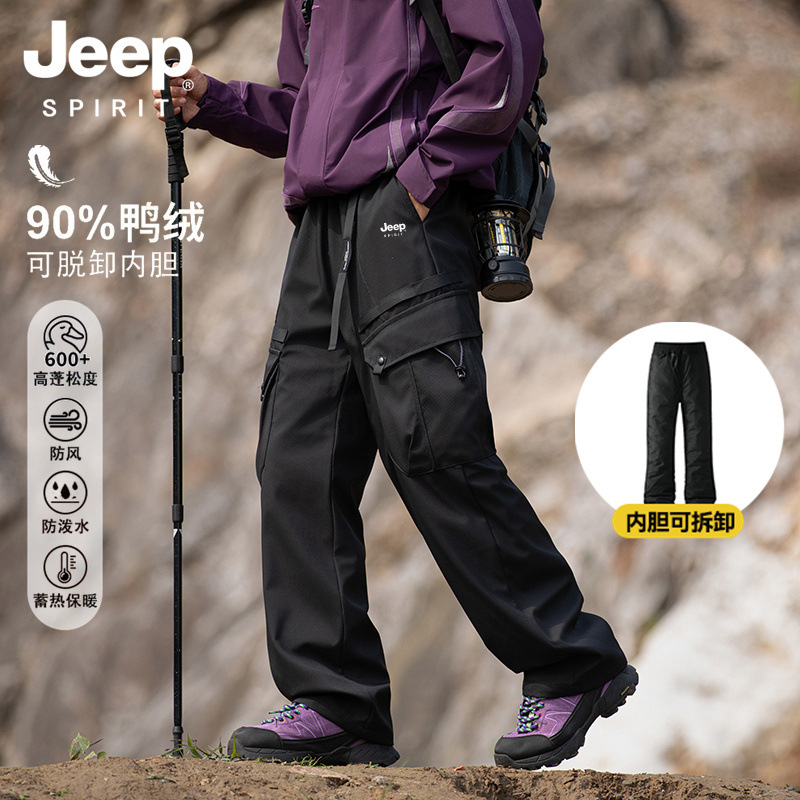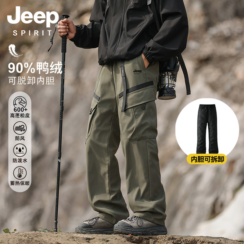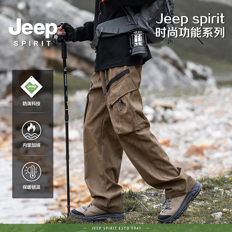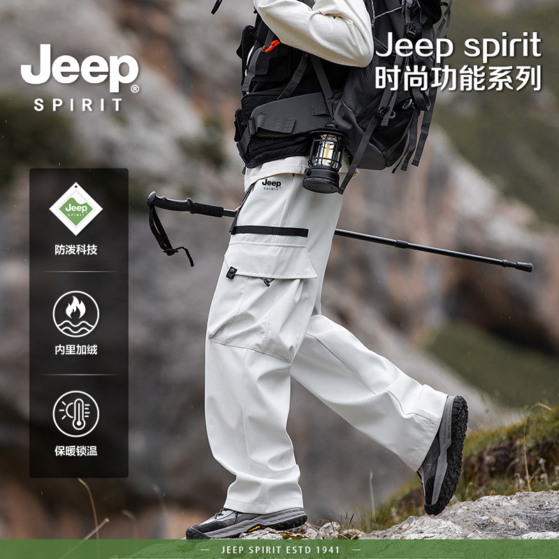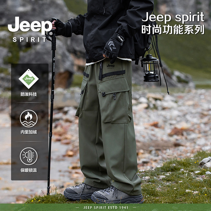지프 정신 가을/겨울 반 튀는 충전 바지 남자 기능성 기모 오버홀 야외 스포츠 긴 바지스토어 가기