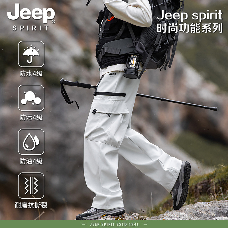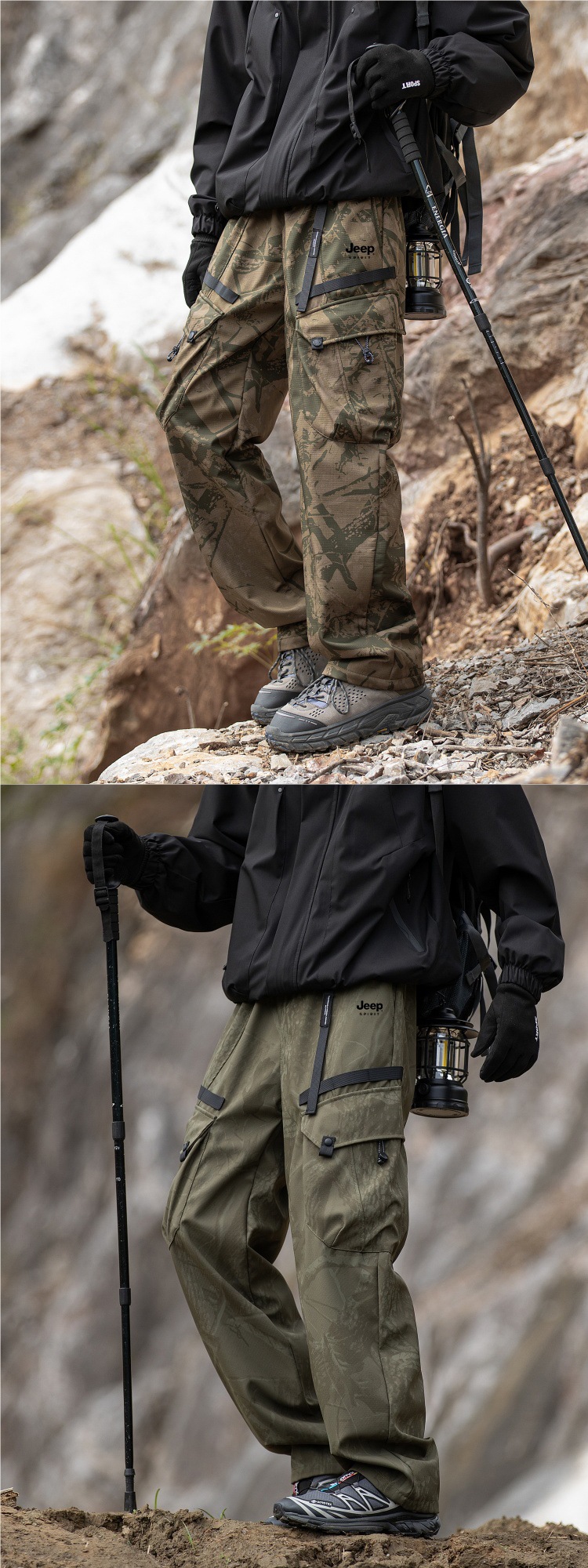 지프 정신 가을/겨울 반 튀는 충전 바지 남자 기능성 기모 오버홀 야외 스포츠 긴 바지