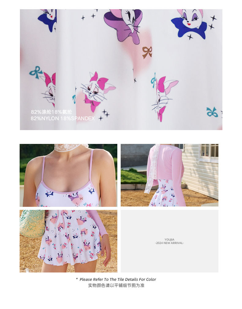 2025 새로운 한국식 수영복 여성용 슬링 프린트 투피스 수영복 긴팔 선스크린 유행 온천 수영복스토어 가기