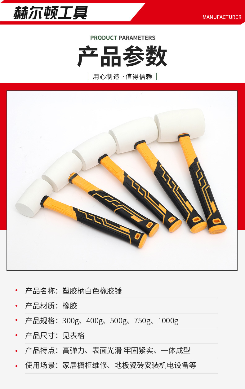 공장 도매 플라스틱 핸들 흰색 고무 망치 장식 플라스틱 통합 고무 망치 가정용 세라믹 타일 타악기 망치