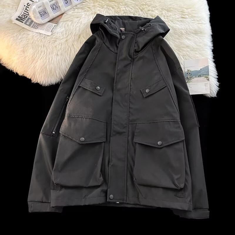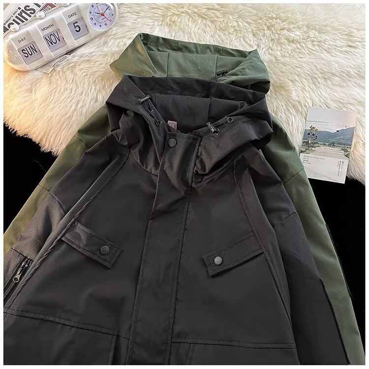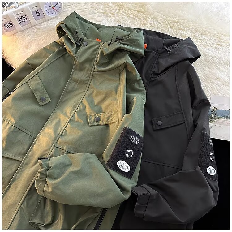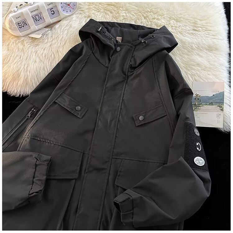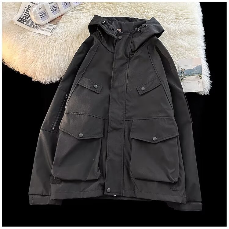 2024 후드 재킷 남자의 새로운 하이 엔드 센스 올 매치 캐주얼 아메리칸 스타일 작업 재킷 탑