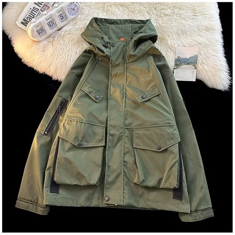 2024 후드 재킷 남자의 새로운 하이 엔드 센스 올 매치 캐주얼 아메리칸 스타일 작업 재킷 탑스토어 가기