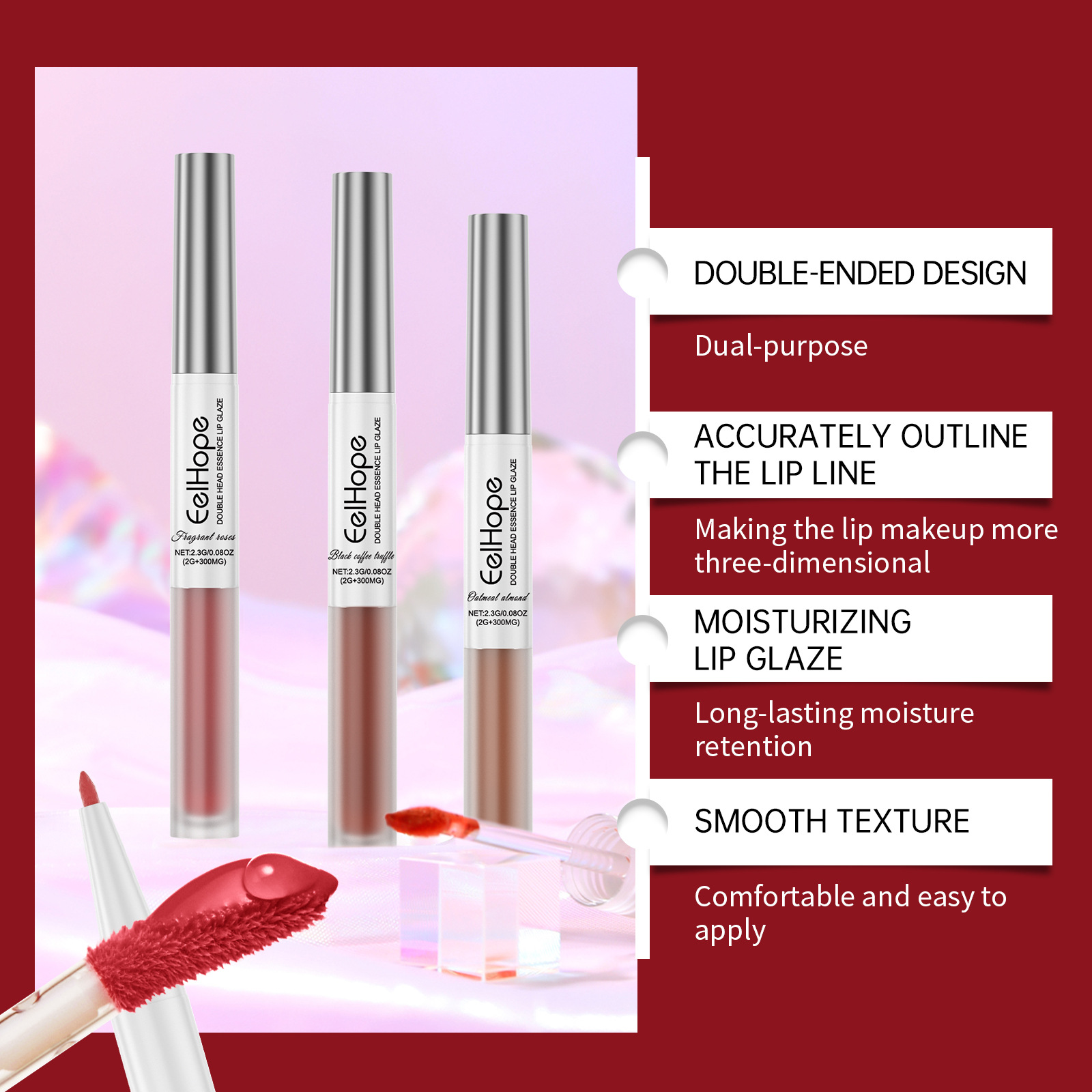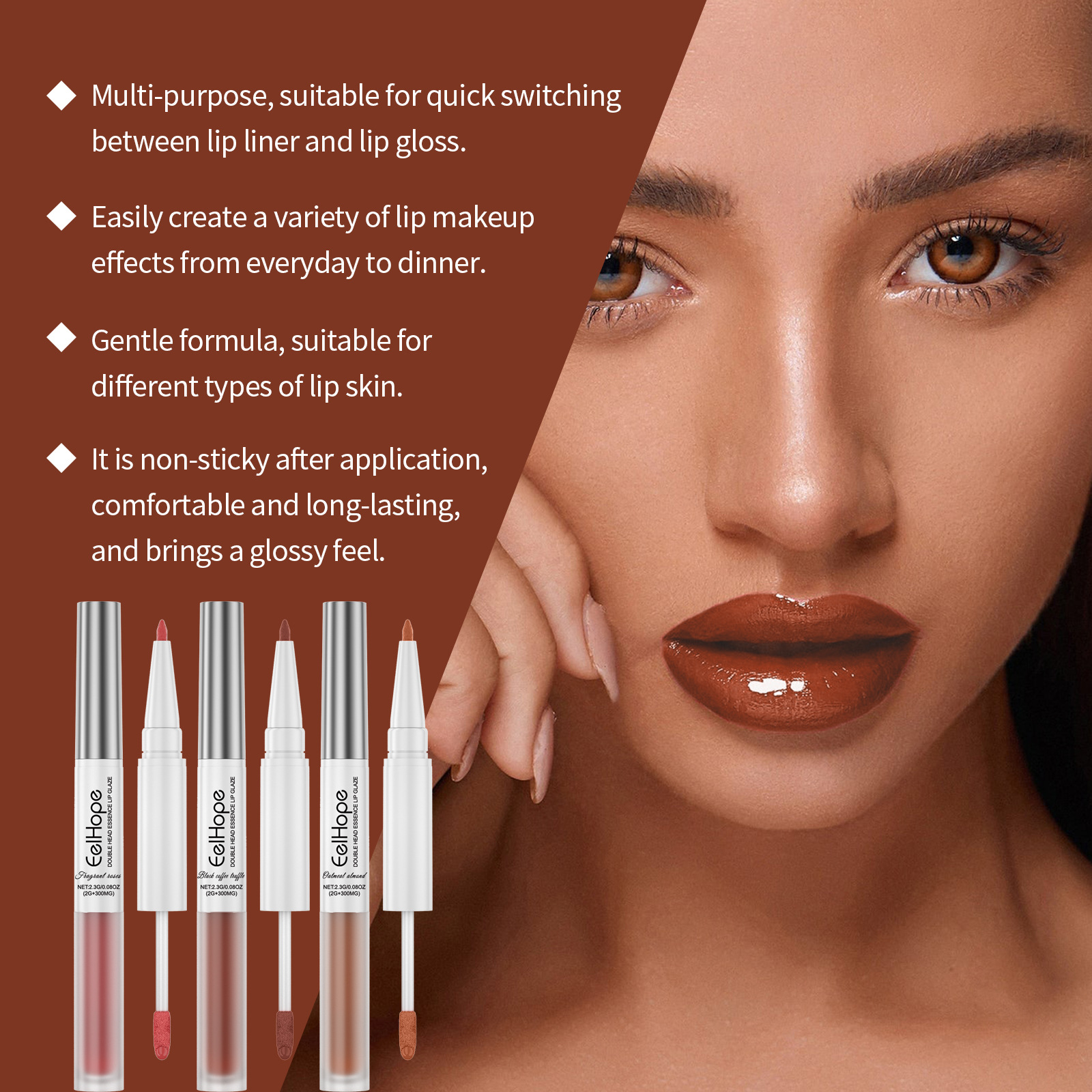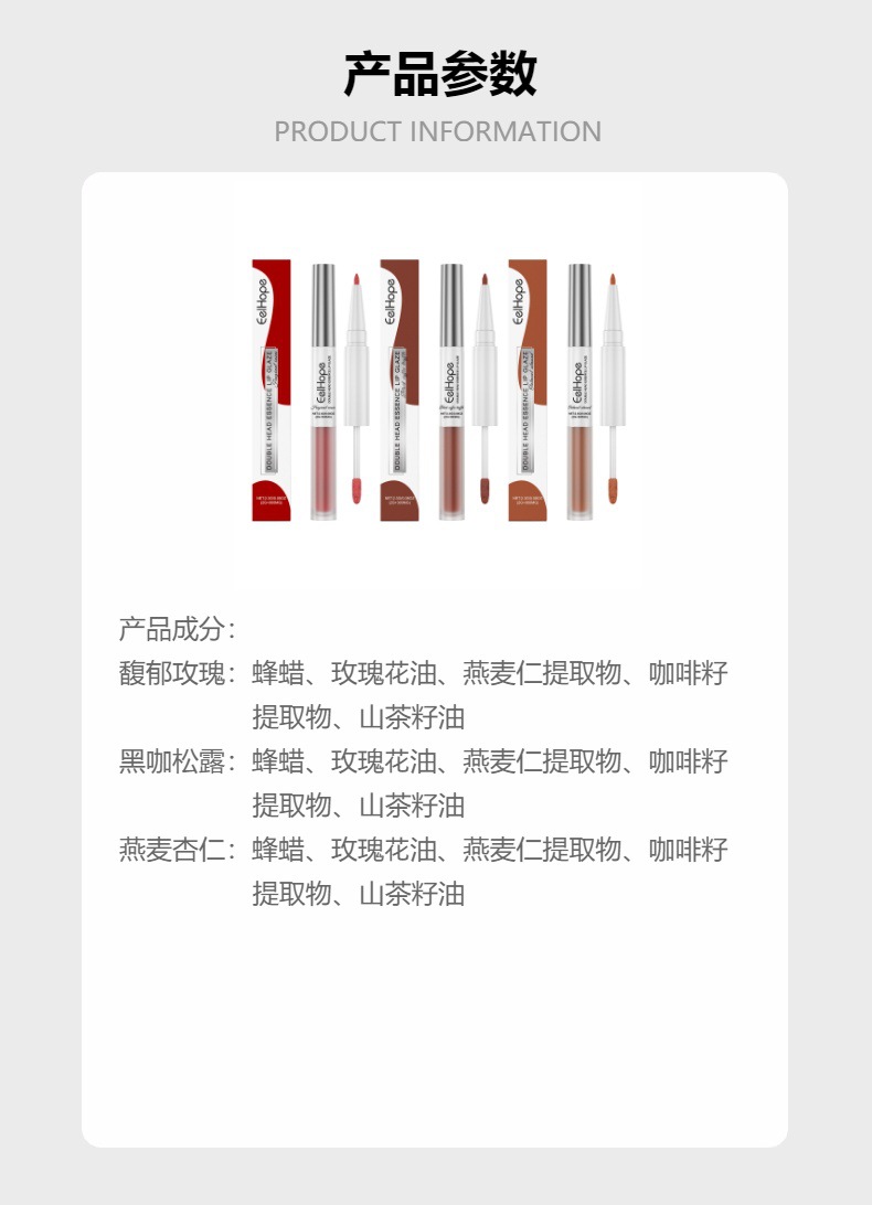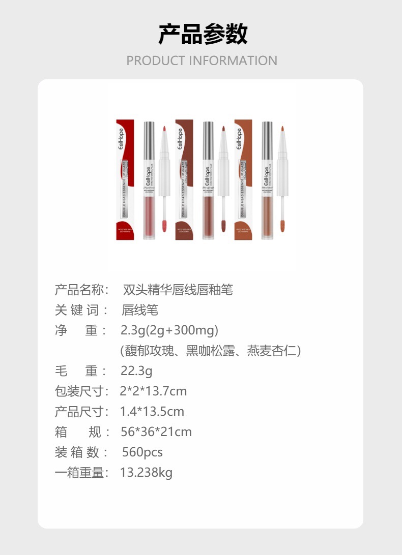 EELHOPE 2 헤드 에센스 립 라인 립 유약 펜 투인원 립 라인 립 유약 미러 워터 라이트 여성 립스틱 립 글로스