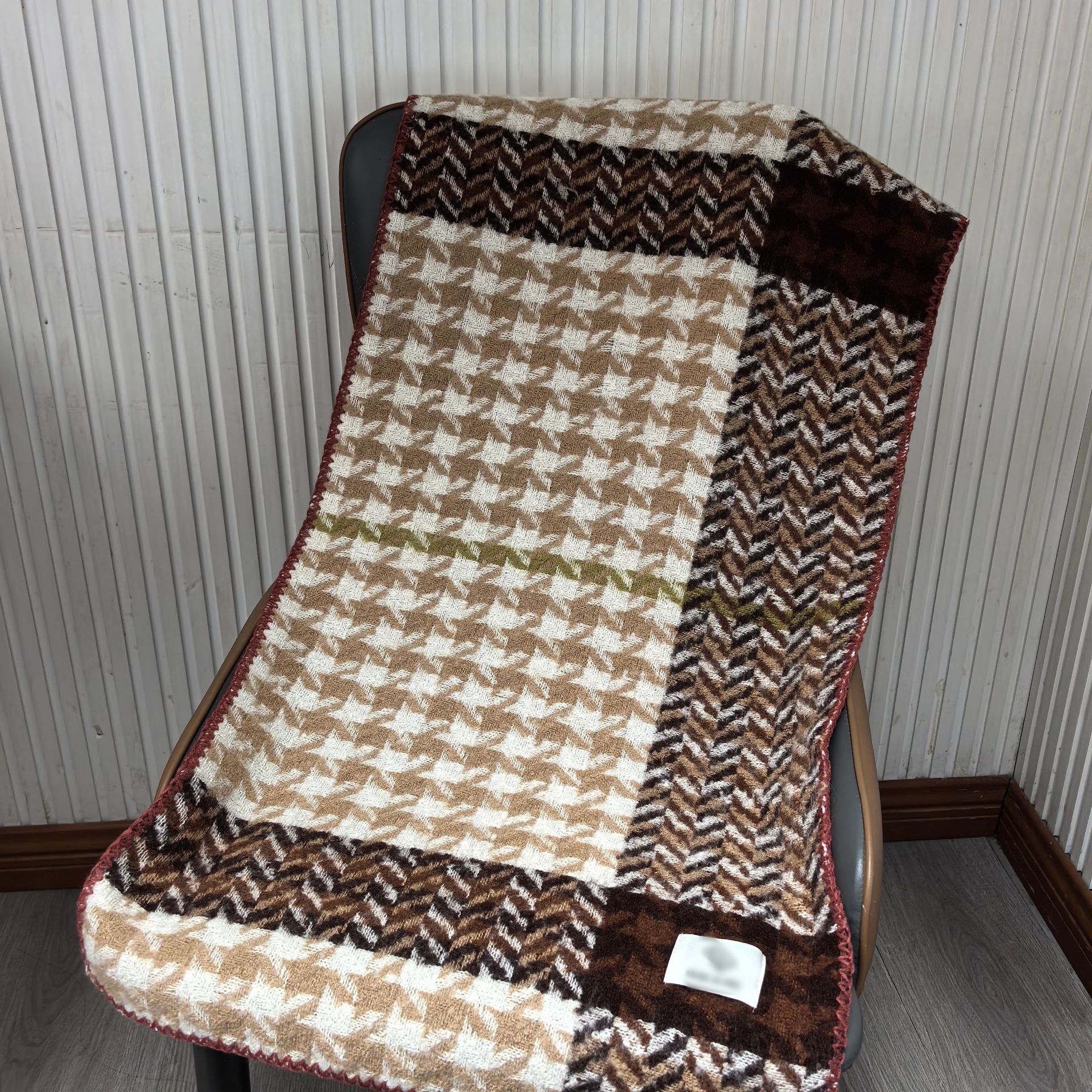 신상 스카프 가을 겨울 고급스러운 라일락 체크 니트 스카프 여성용 두꺼운 겨울 한국 스타일 분위기 스카프스토어 가기