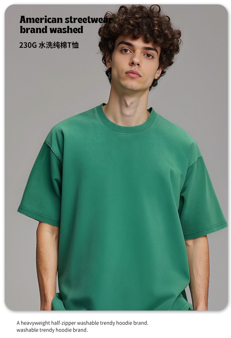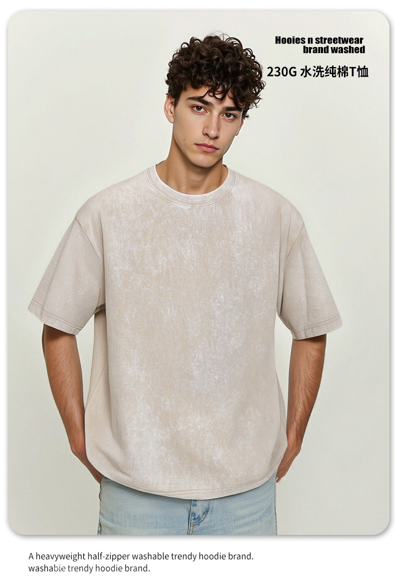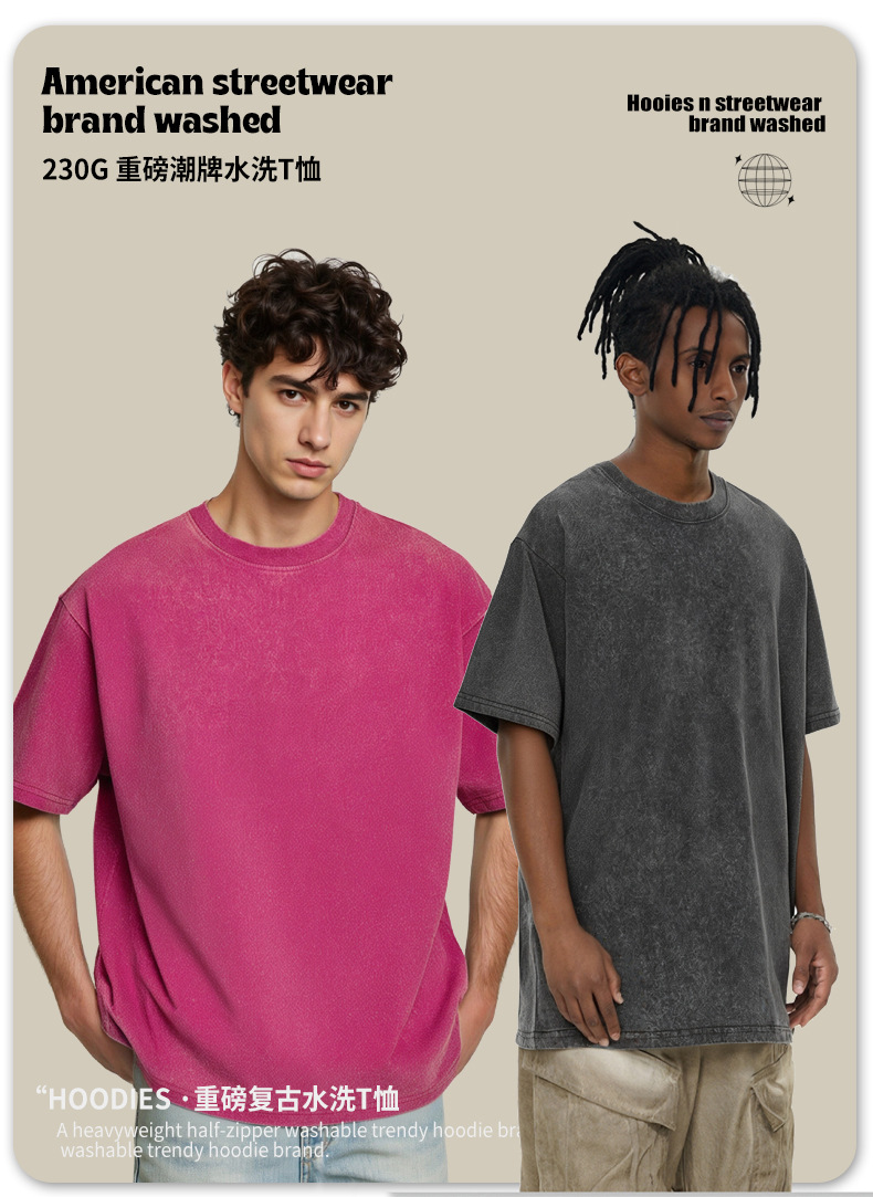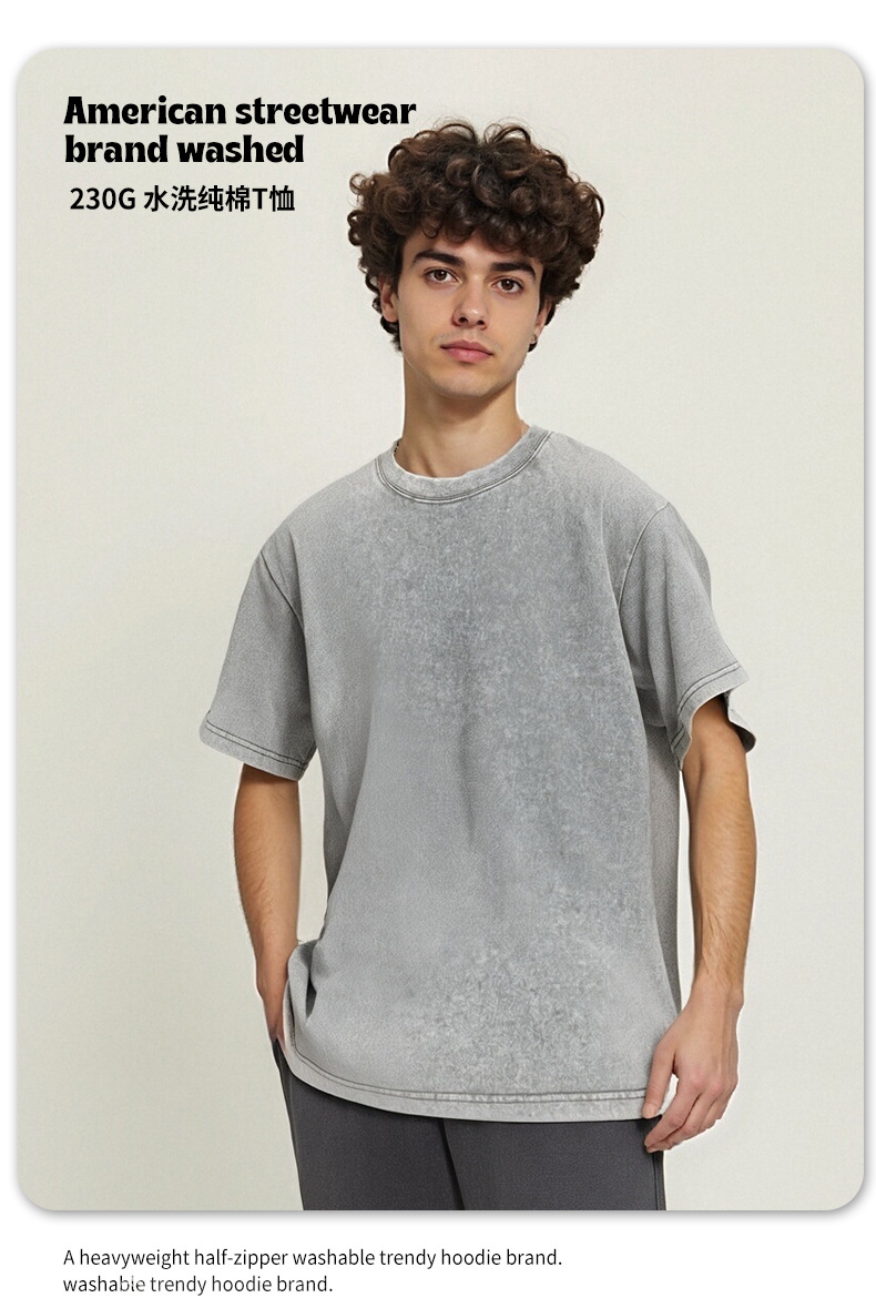 크로스보더 230g 워싱 디스트레스드 티셔츠 헤비 라운드 넥 오프 숄더 대형 남성 티셔츠 아메리칸 레트로 반팔 남성 티셔츠스토어 가기