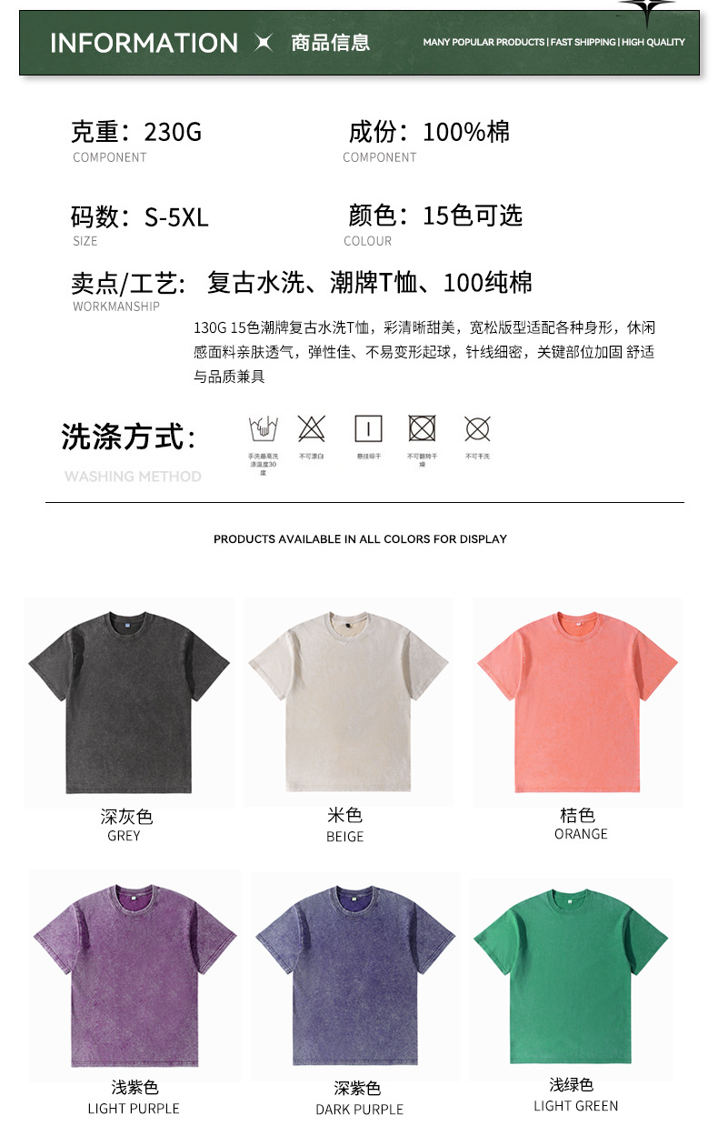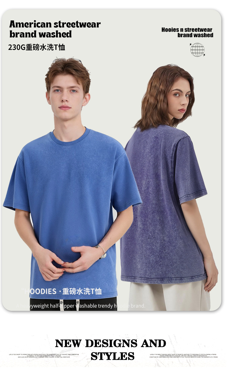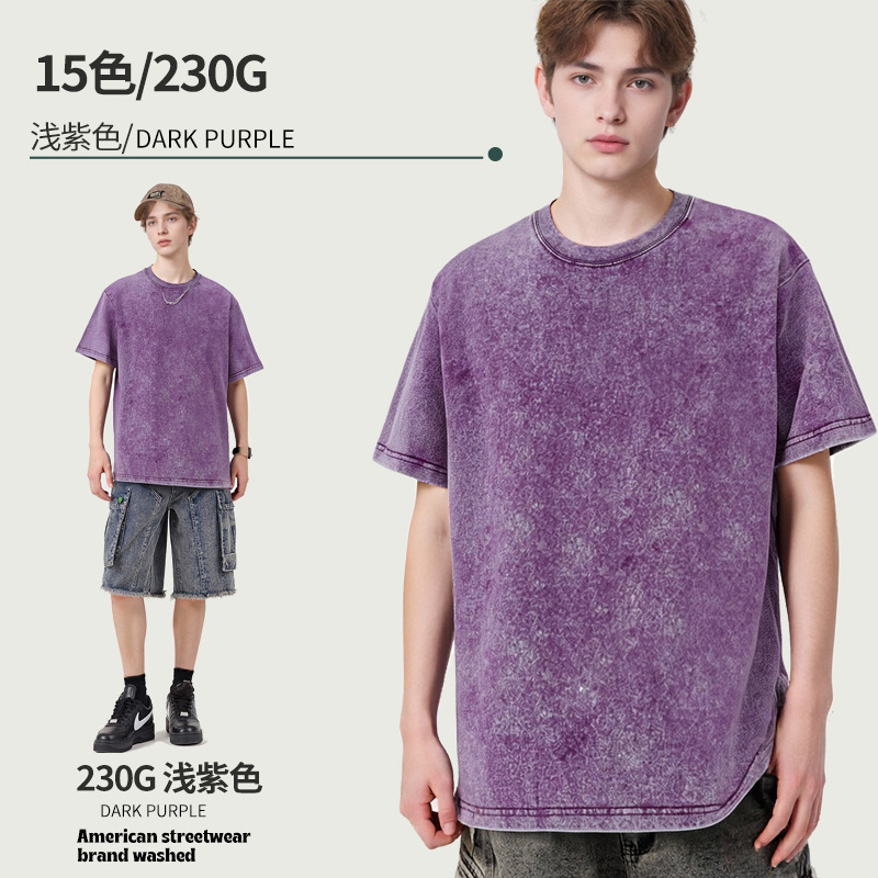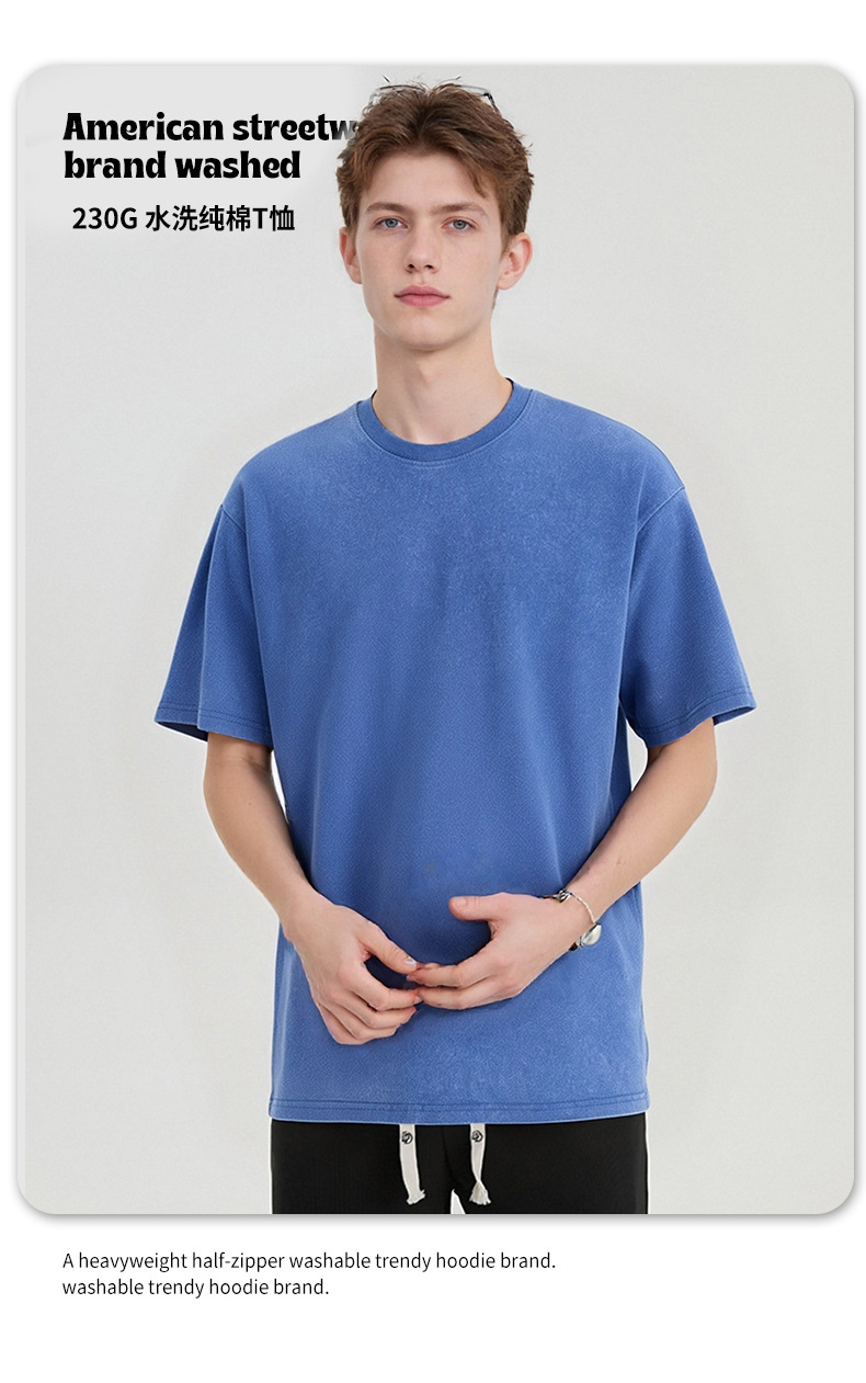 크로스보더 230g 워싱 디스트레스드 티셔츠 헤비 라운드 넥 오프 숄더 대형 남성 티셔츠 아메리칸 레트로 반팔 남성 티셔츠스토어 가기