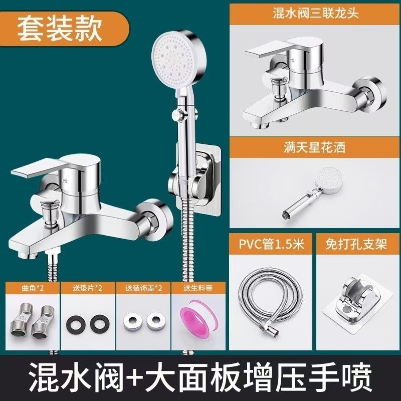 공장 도매 욕실 트리플 욕조 수도꼭지 측면 열기 및 냉간 혼합 이중 제어 회전 스위칭 샤워 수도꼭지스토어 가기
