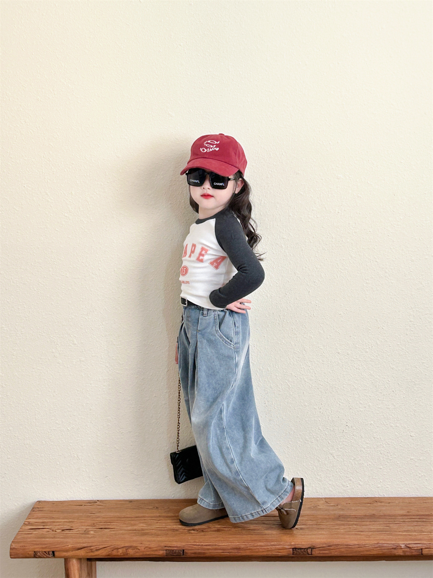 2025 가을 신상 여아 루즈핏 데님 와이드 팬츠 여아 캐주얼 한국 스타일 롱 팬츠 2-6세용