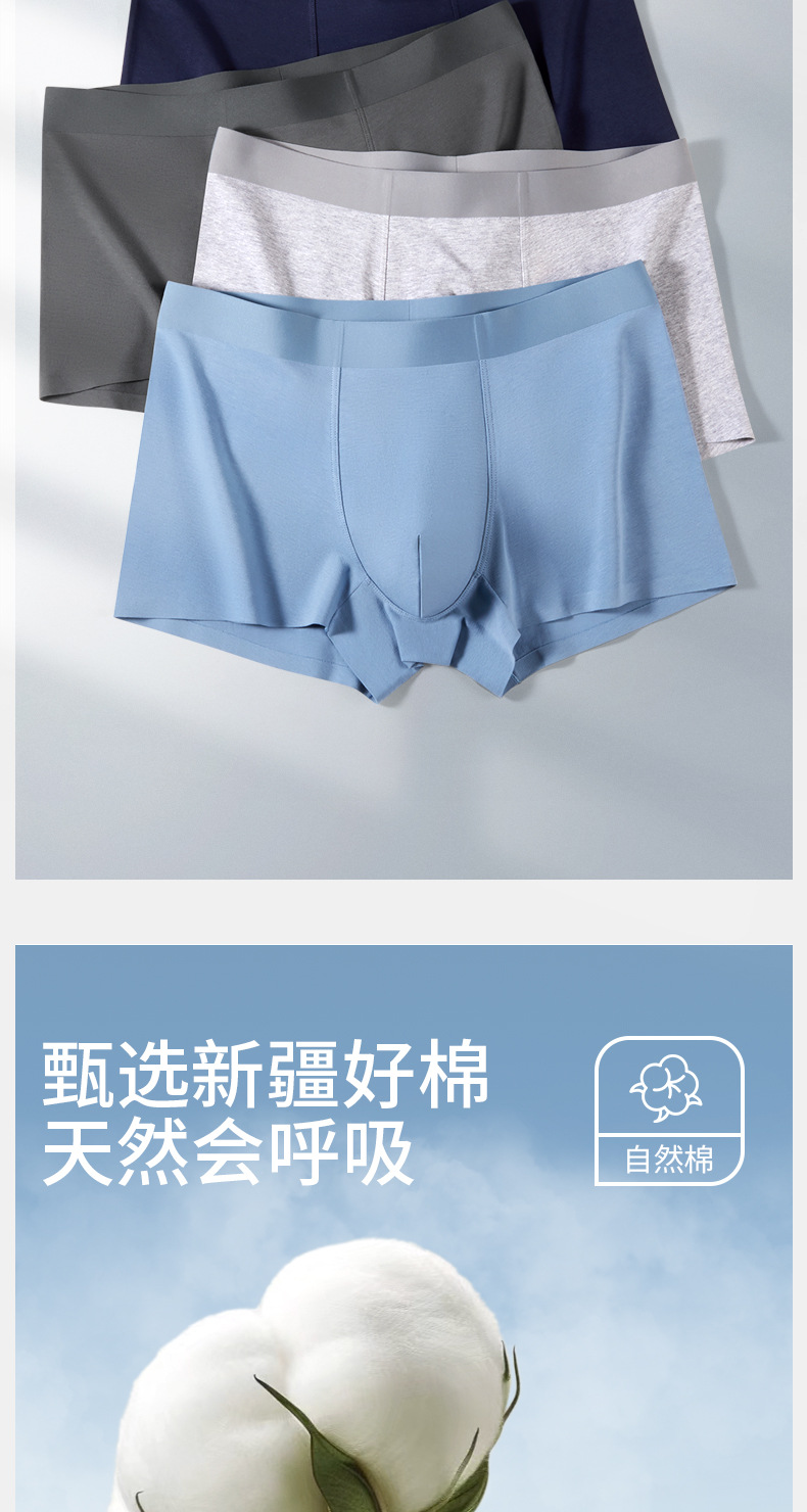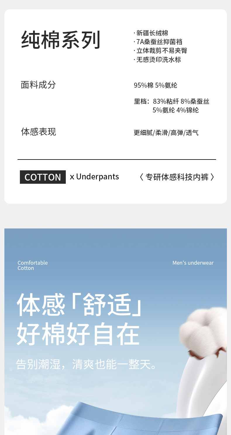 새로운 속옷 남성면 신강 긴 스테이플 코튼 원활한 7A 뽕나무 실크 항균 복서 미드 웨이스트 복서 반바지스토어 가기