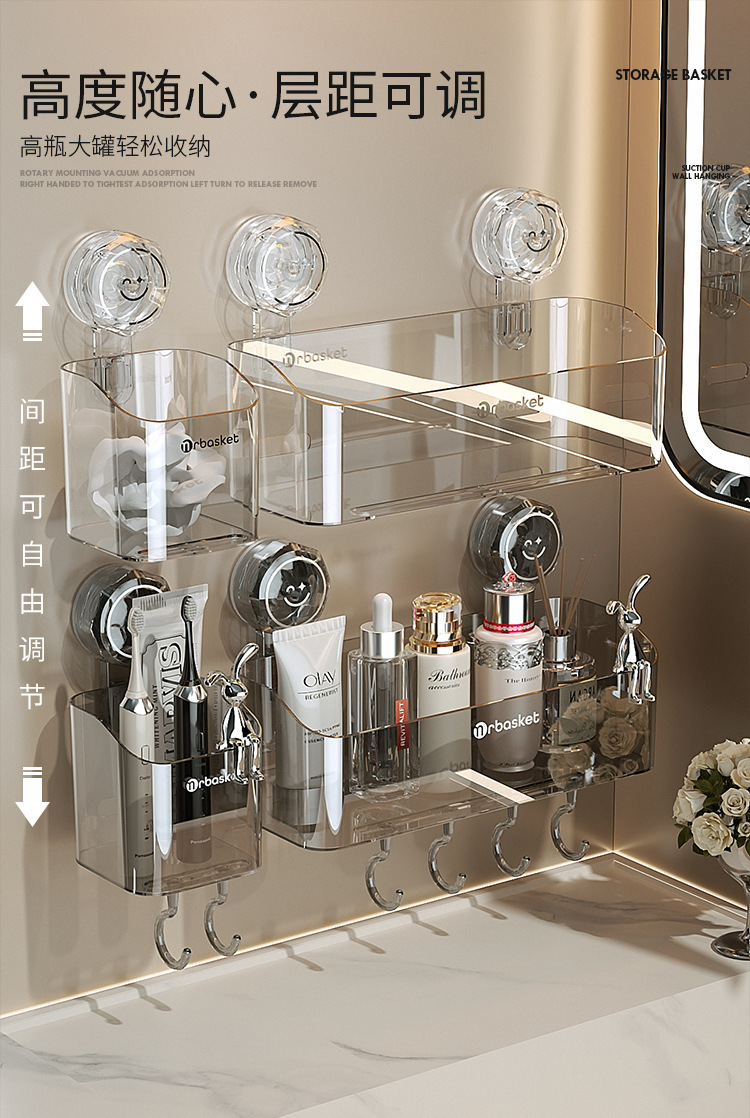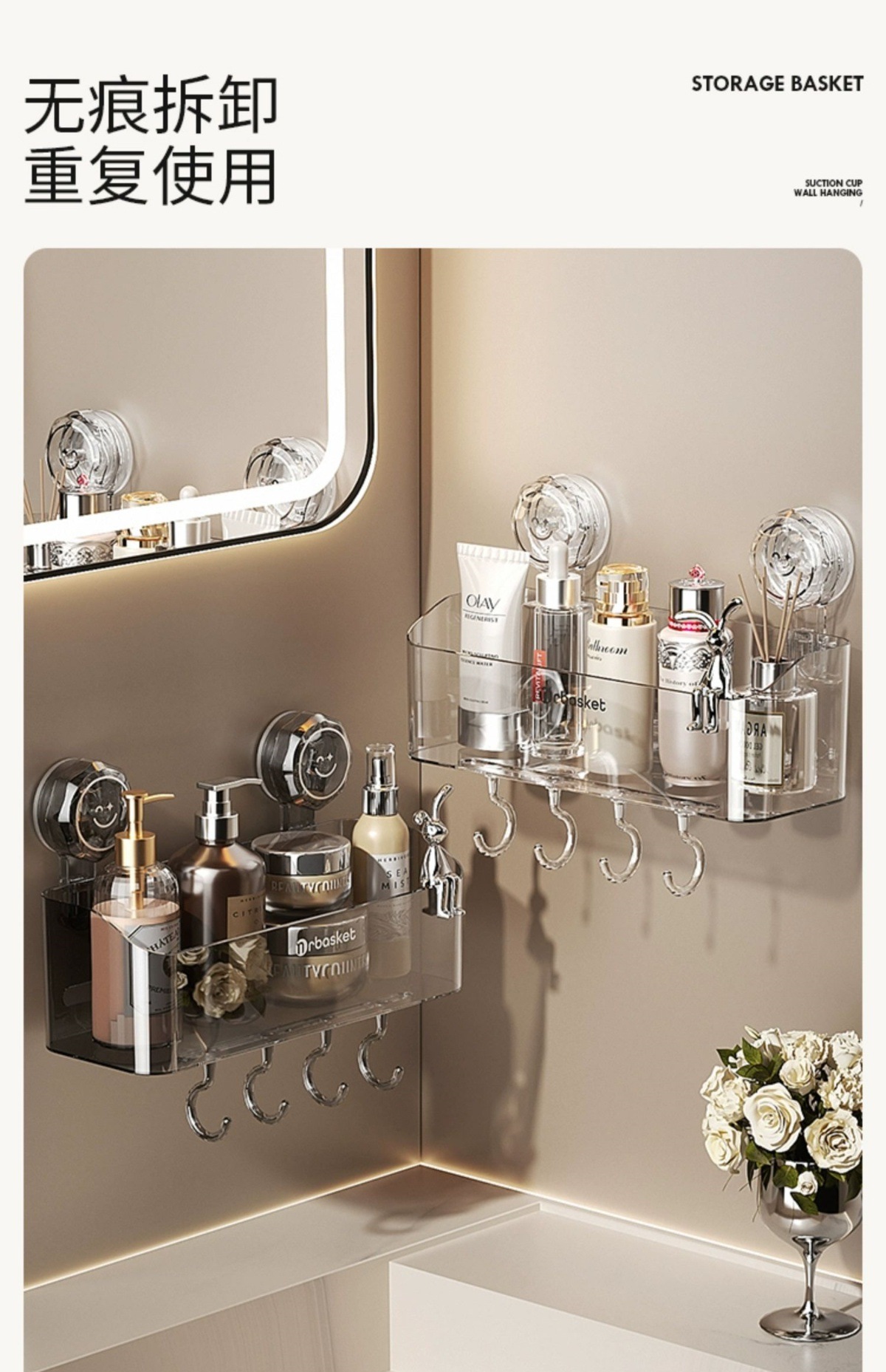 석션 컵 스토리지 랙 욕실 화장실 교수형 바구니 세척 테이블 벽 교수형 스토리지 박스 펀치 프리 화장실 스토리지 랙