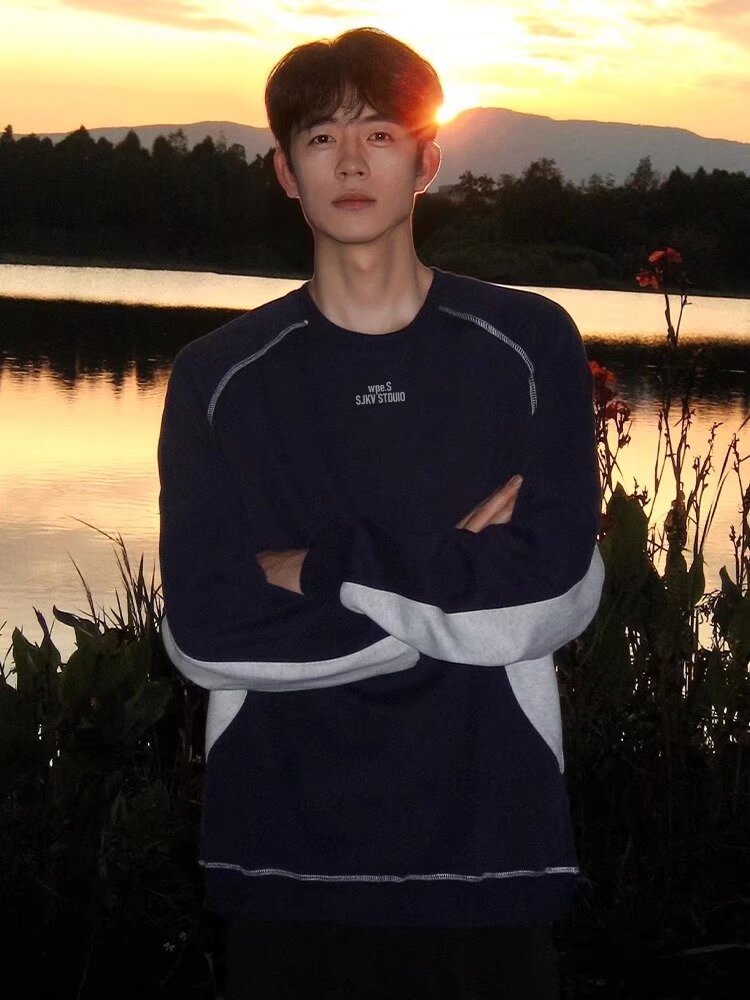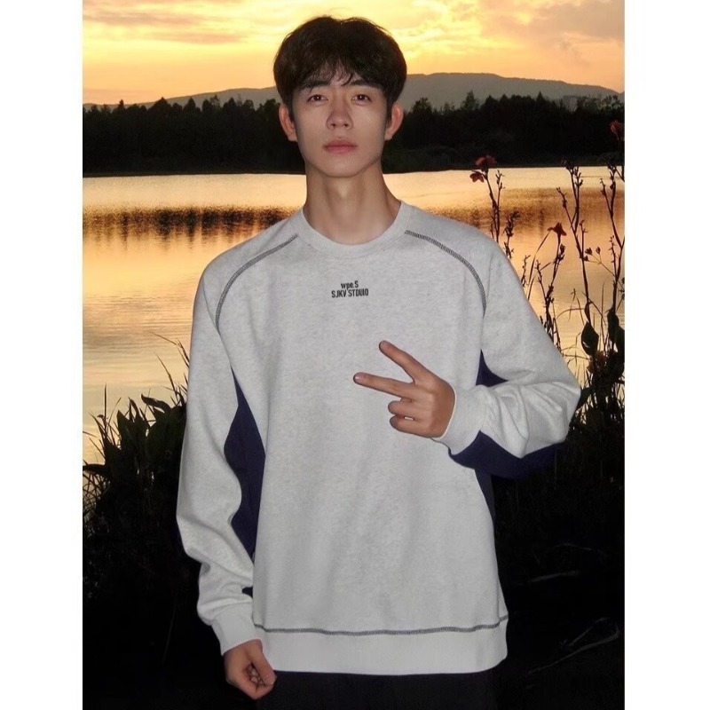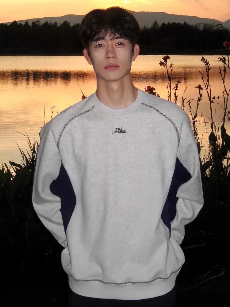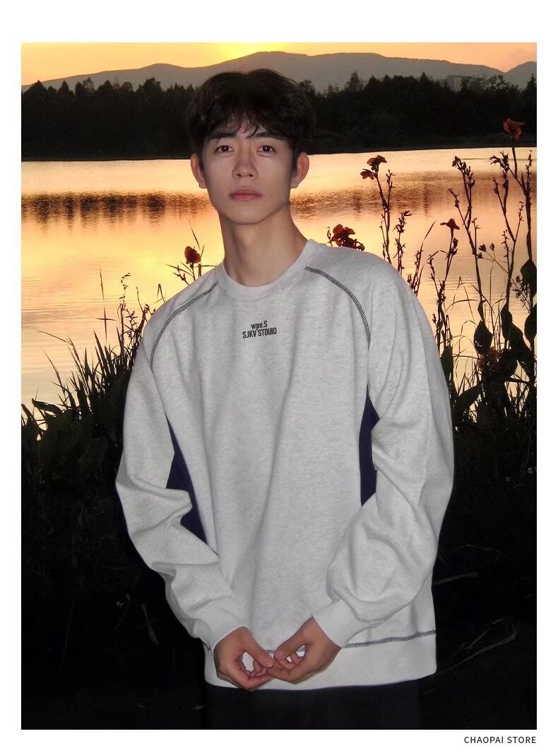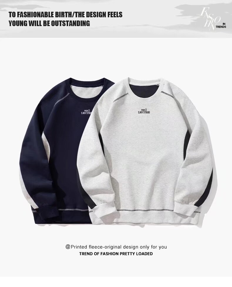 새로운 스티칭 네이비 크루 넥 기모 스웨트 셔츠 남성 가을 및 겨울 미국 무거운 긴팔 티셔츠 남성용 Hoodless Inner T스토어 가기