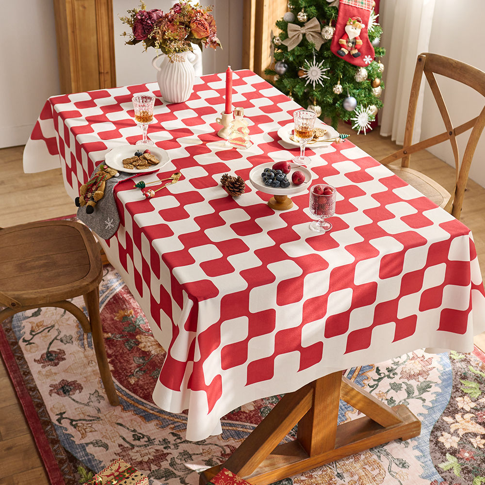 새해 타블렛 레드 축제 크리스마스 식탁보 분위기 식탁보 다이닝 식탁보 페어 천 크리스마스 스타일 장식 천