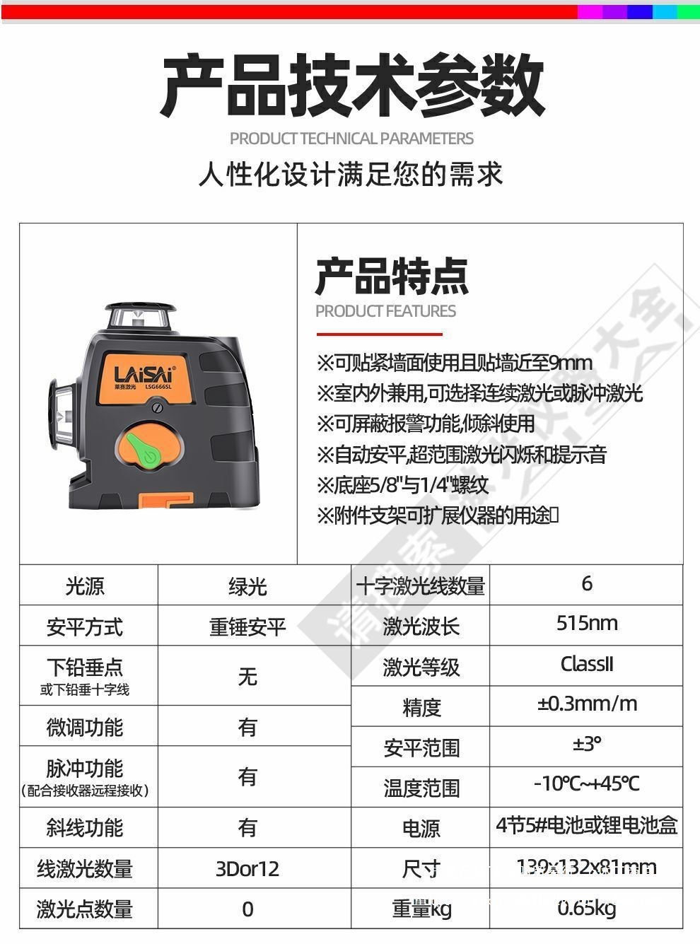 Lesai 12 라인 8 라인 레이저 적외선 석고 포인트 666SL 고정밀 레드 라이트 그린 벽 붙여 넣기 악기스토어 가기