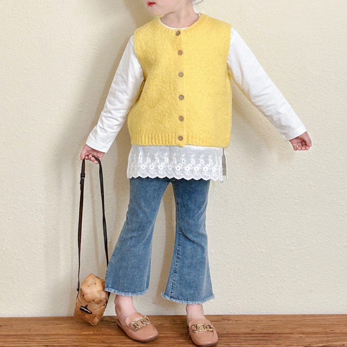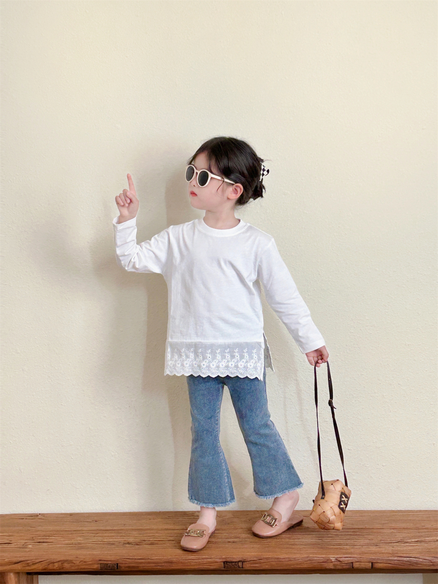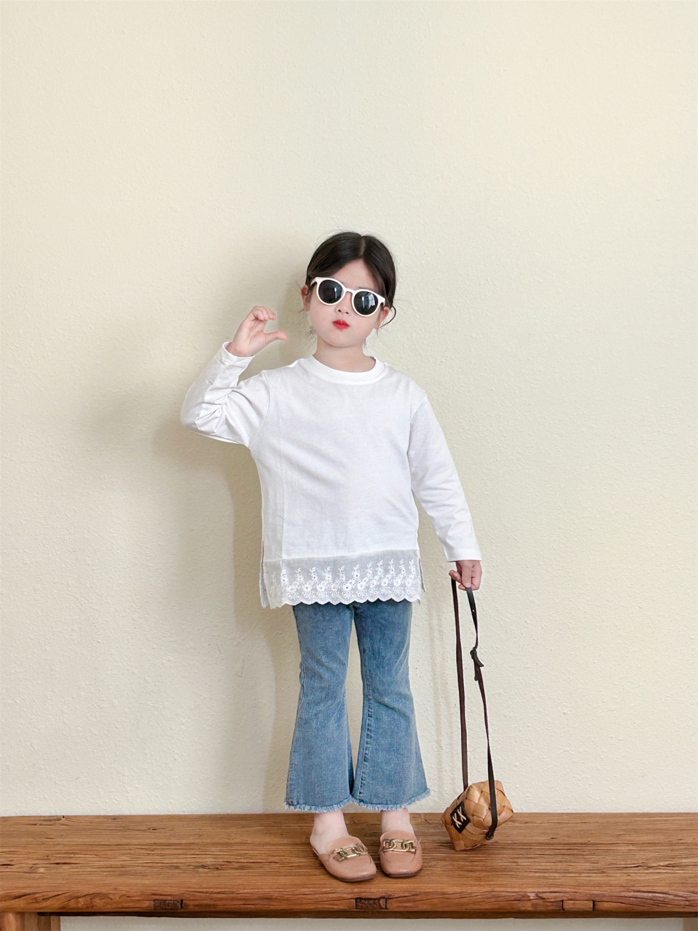 여아 데님 플레어 팬츠 2025 봄 신상 아기 여아 스타일리쉬하고 다재다능한 한국 스타일 마이크로 플레어 신축성 있는 바지스토어 가기