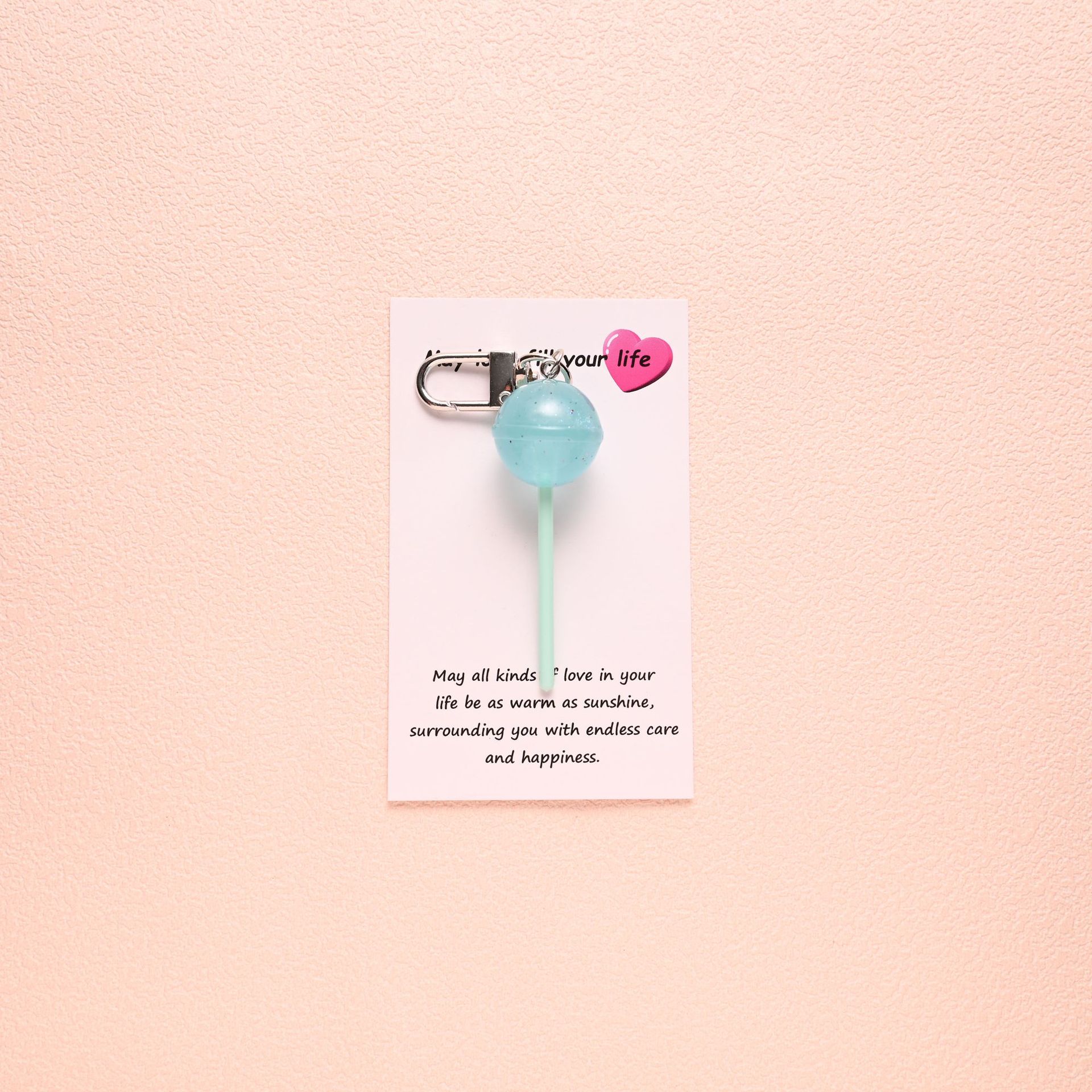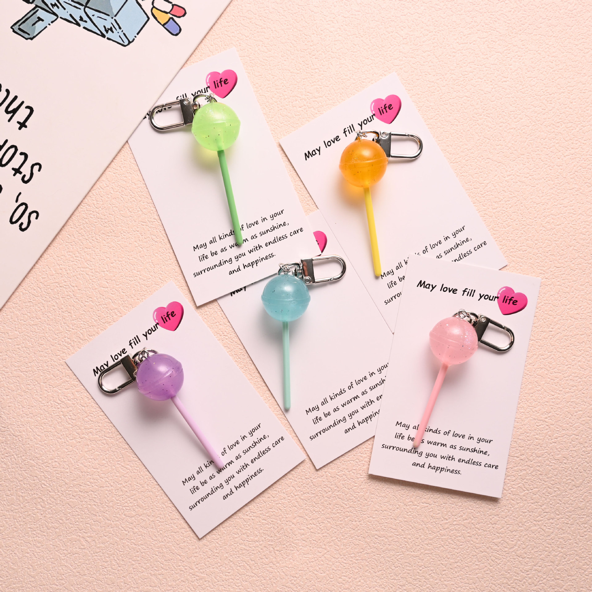 국경 간 창조적 인 재미 축복 인사말 카드 키 체인 Macaron 컬러 시뮬레이션 수지 롤리팝 키 체인 펜던트