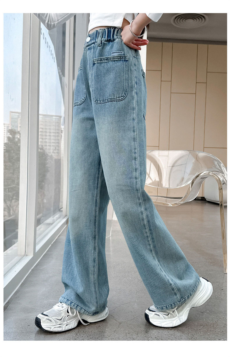 소녀 청바지 2025 새로운 한국 스타일 느슨한 바지 빅 키즈 올 매치 웨스턴 스타일 슬림 와이드 레그 트렌디 한 아우터 바지스토어 가기
